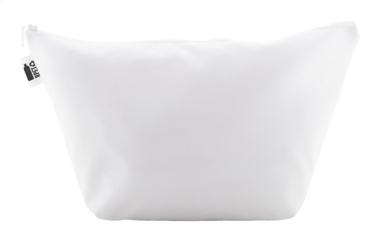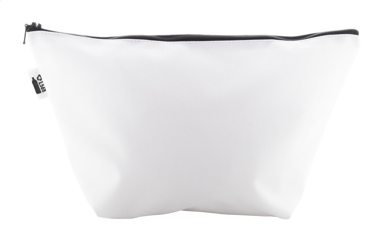 Trousse per prodotti cosmetici personalizzabile in poliestere 600D RPET con cerniera, etichetta RPET e grafica stampata in sublimazione su tutta la superficie. MOQ: 50 pezzi.