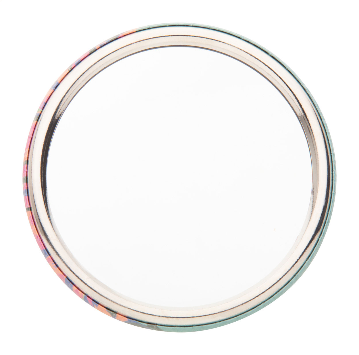 Specchio a bottone tascabile con inserto in carta personalizzabile a colori. Il prezzo include la stampa digitale. MOQ: 100 pezzi.