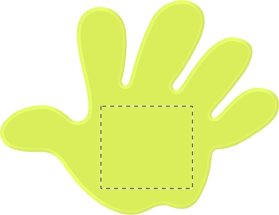 Adesivo riflettente a forma di mano.