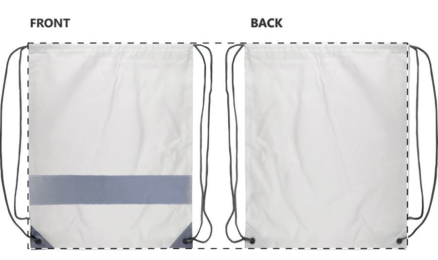 Sacca con chiusura a coulisse, banda riflettente e angoli rinforzati, in poliestere 190T. Con grafica stampata in sublimazione su tutta la superficie. MOQ: 50 pezzi.