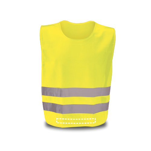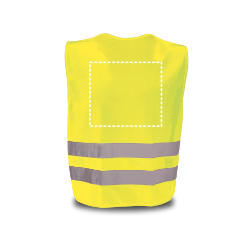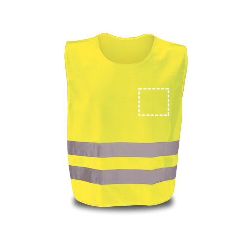 Gilet alta visibilità in 100% poliestere con certificato EN 17353. Gilet riflettente con 2 bande riflettenti orizzontali ed elastici laterali. Questo prodotto non è adatto per uso professionale