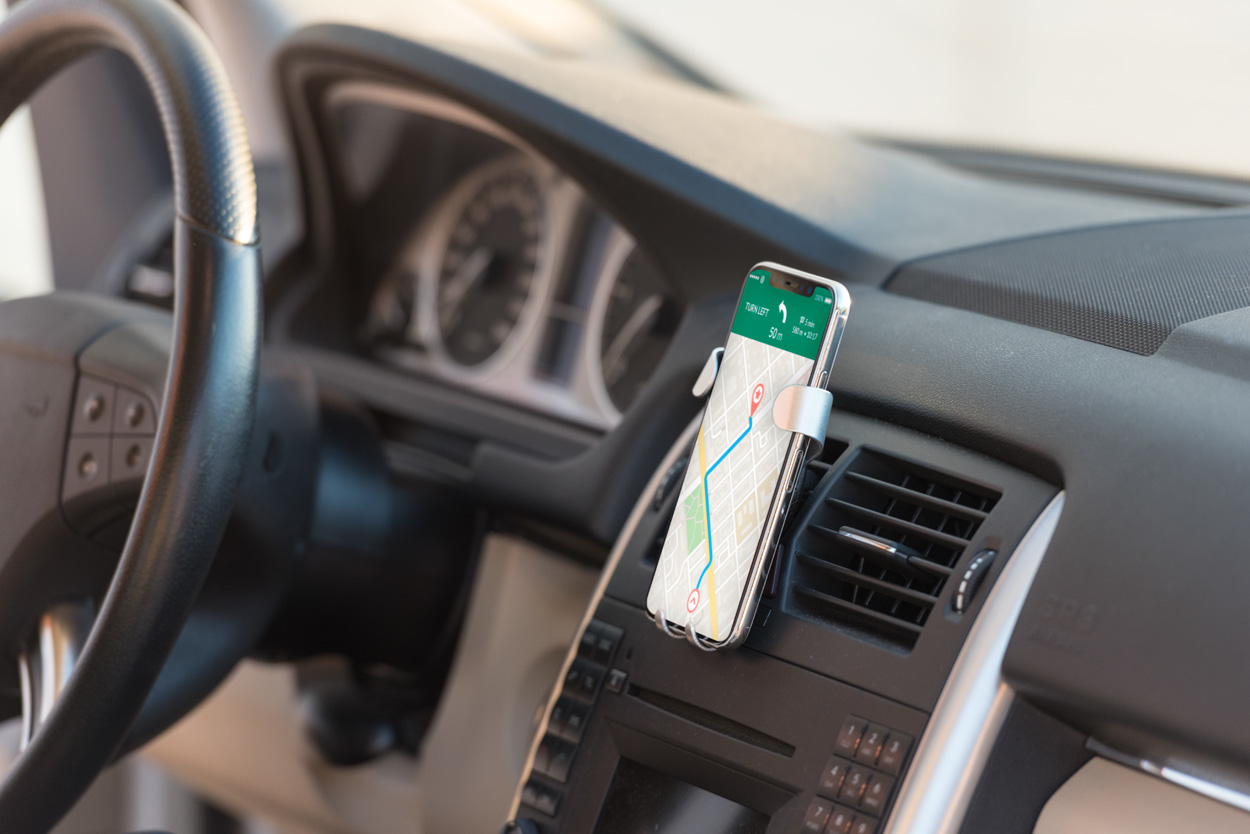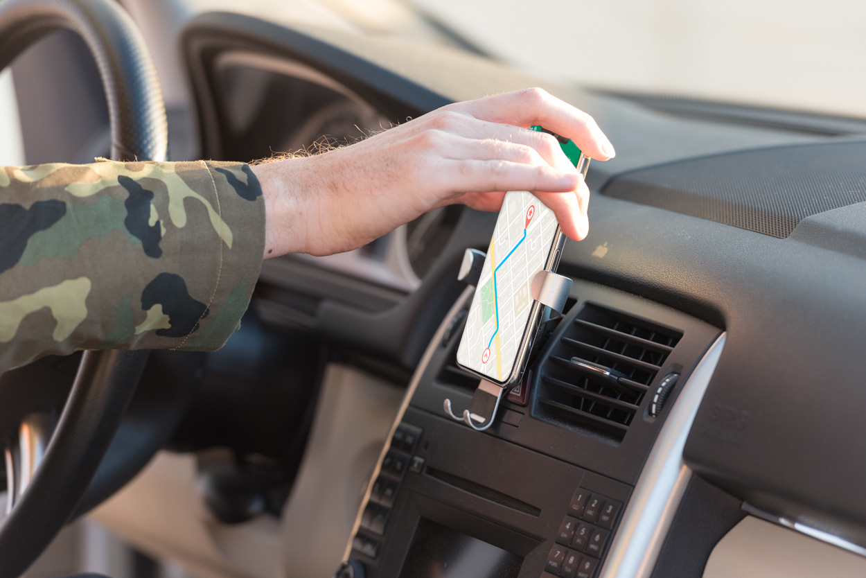 Porta cellulare per auto in alluminio con montaggio alla presa d'aria.