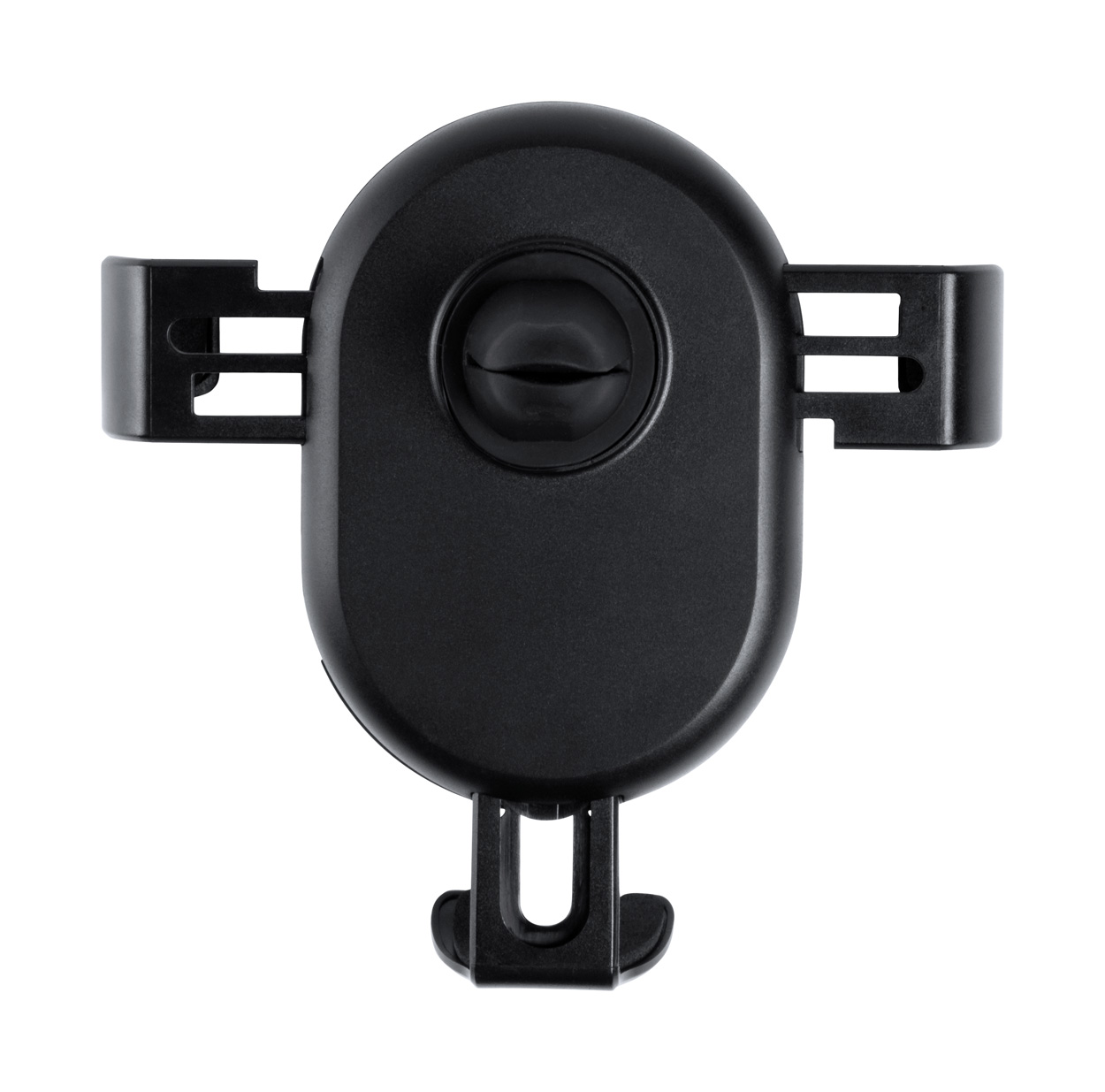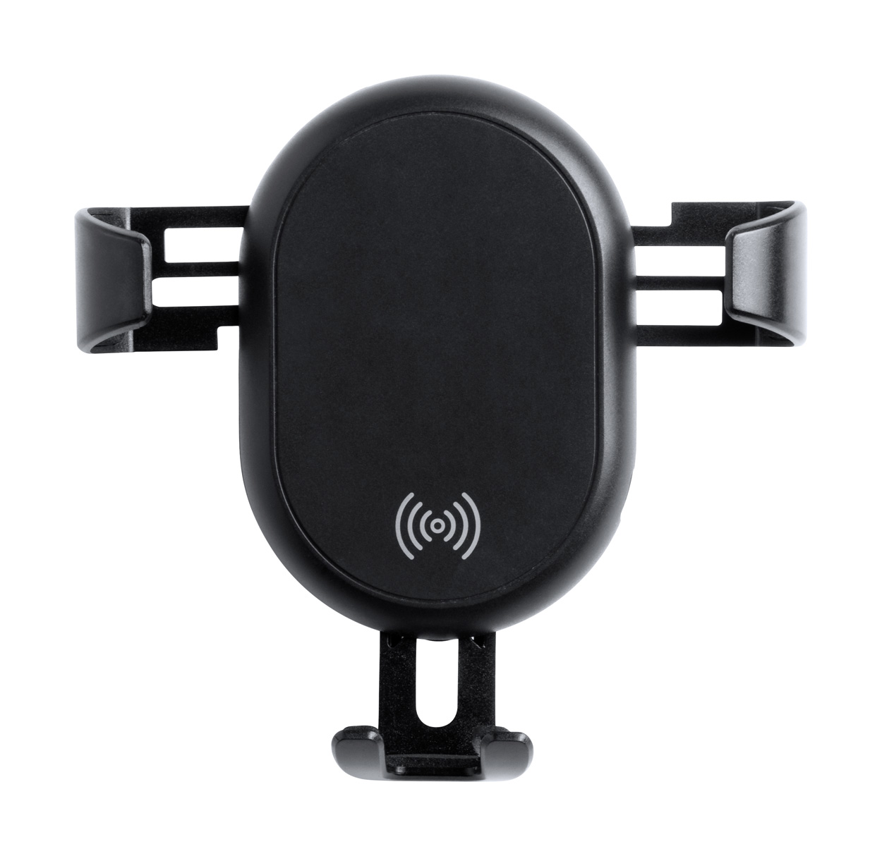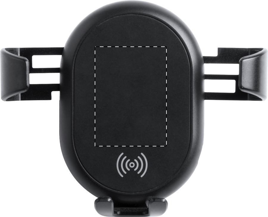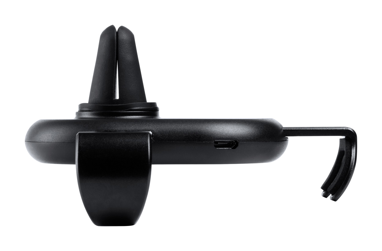Porta cellulare da auto in plastica, con caricatore wireless integrato (5W) e supporto di aggancio alle bocchette dell'aria. Cavo di ricarica USB incluso