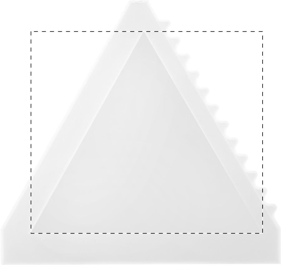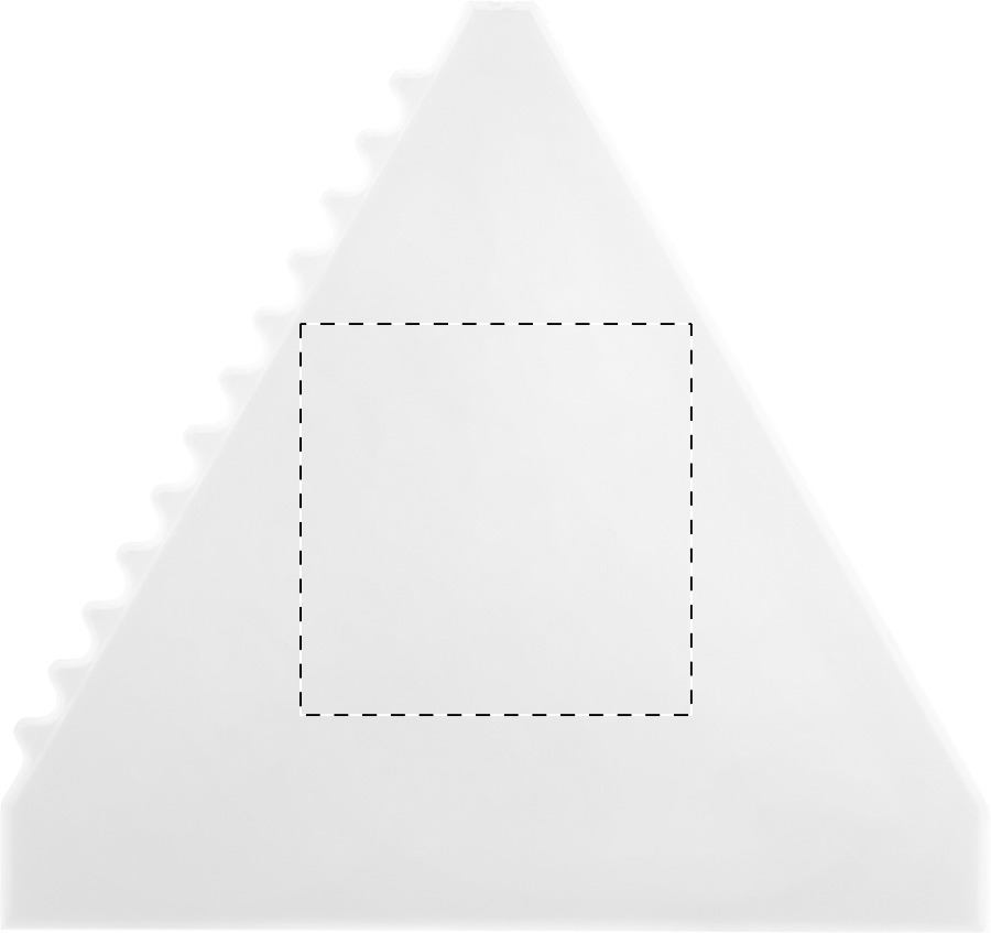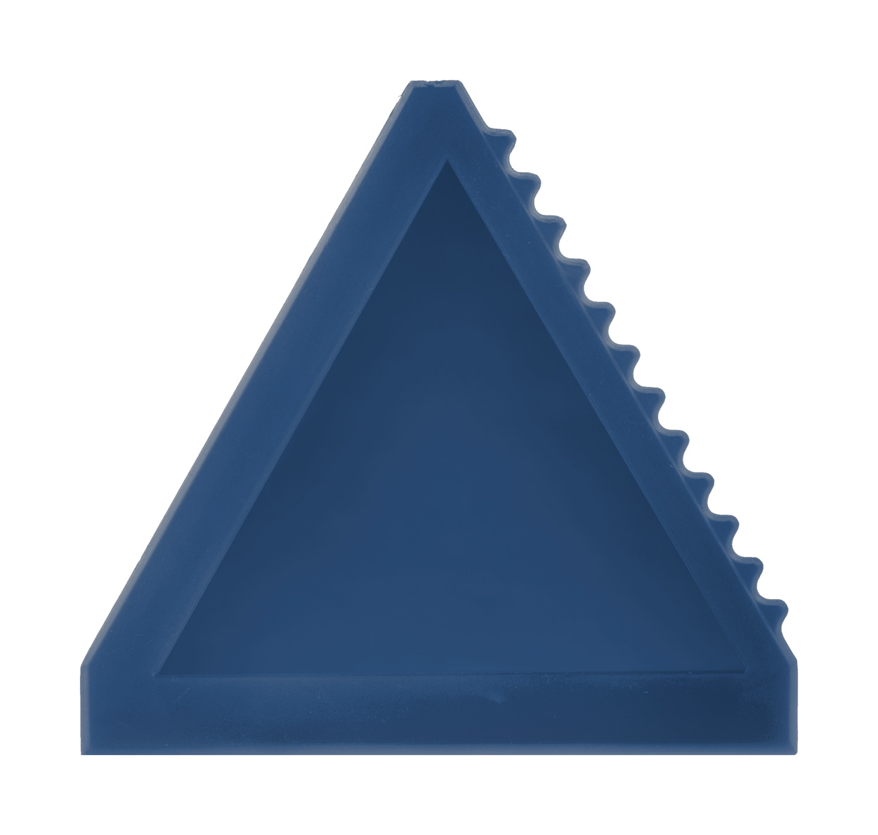 Raschietto per il ghiaccio in plastica di forma triangolare.