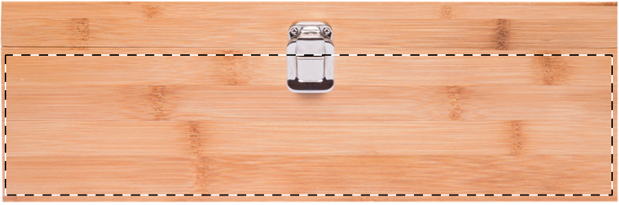 Set vino composto da un tappo, un cavatappi, un salva goccia ed un tappo versatore in scatola di bambù con scomparto per una bottiglia di vino, non inclusa.