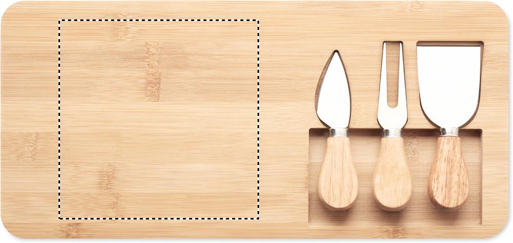 Set tagliere da formaggio in bamboo con 2 coltelli e una forchetta.