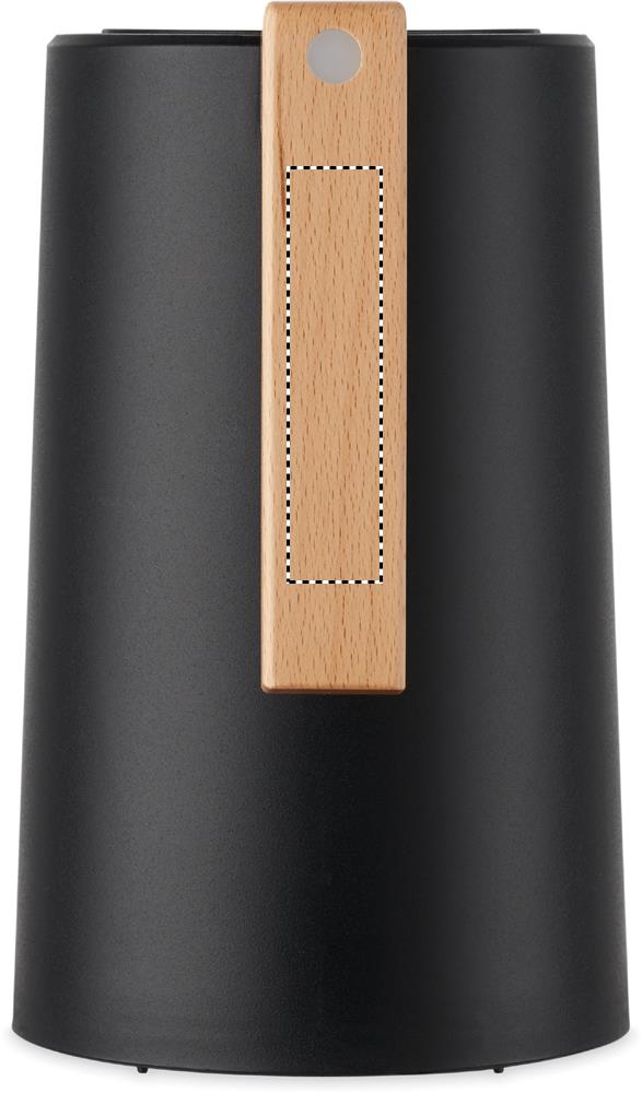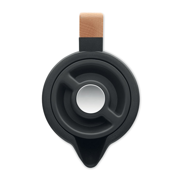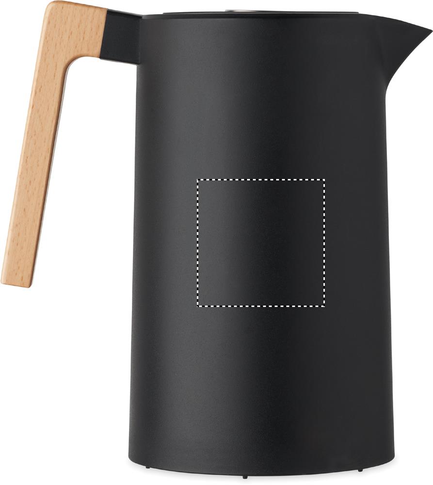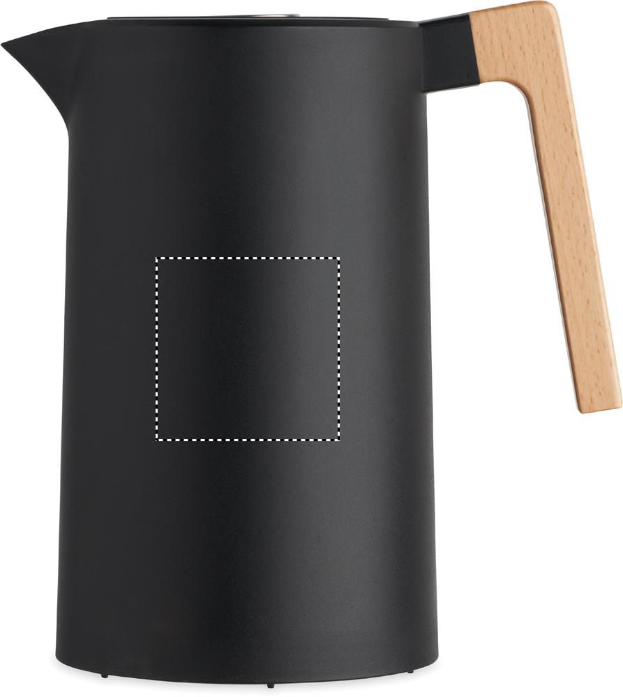 Caraffa sottovuoto isolata a doppio strato in acciaio inox riciclato all'interno e PP all'esterno con manico in legno. Capacità: 1 litro.