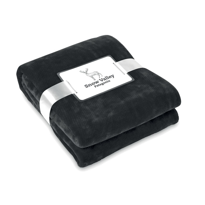 Coperta in flanella 280gr confezionata con nastro e cartoncino stampabile.
