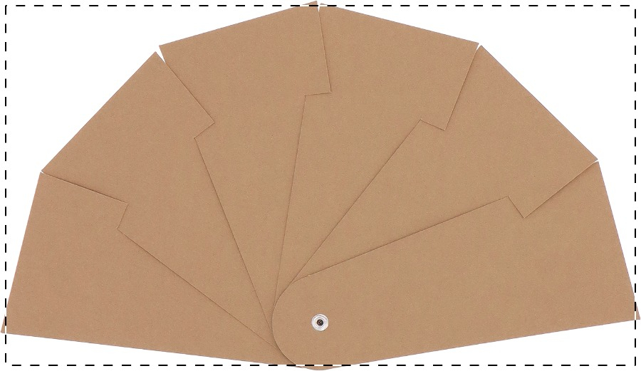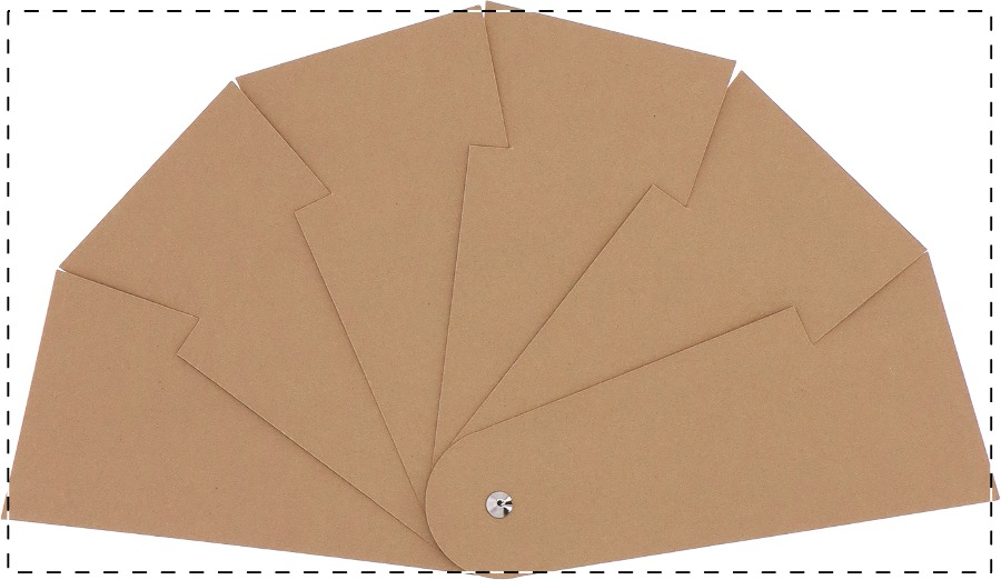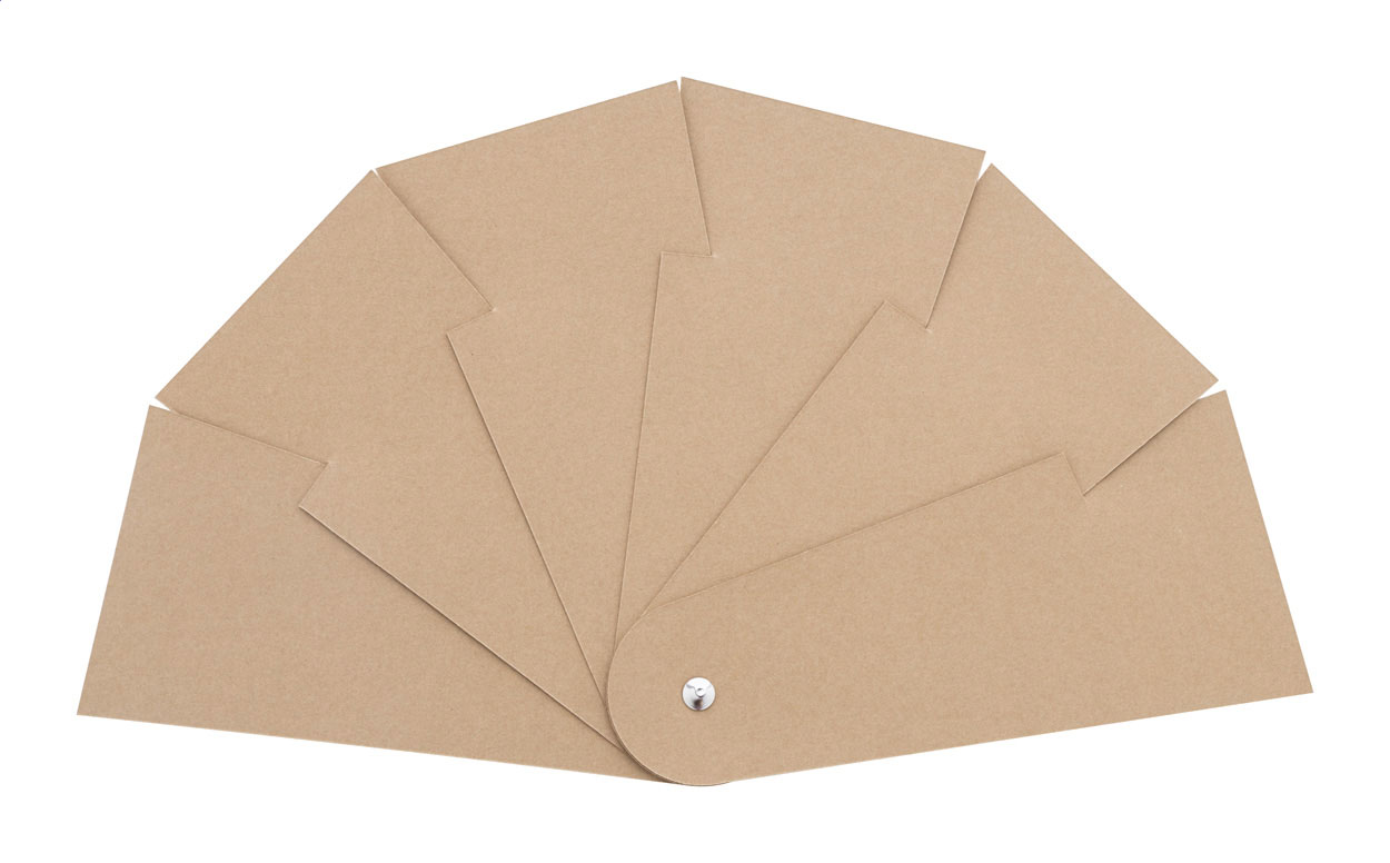 Ventaglio in carta kraft pieghevole con grafica a colori. Il costo comprende la stampa digitale su entrambi i lati. MOQ: 100pz.