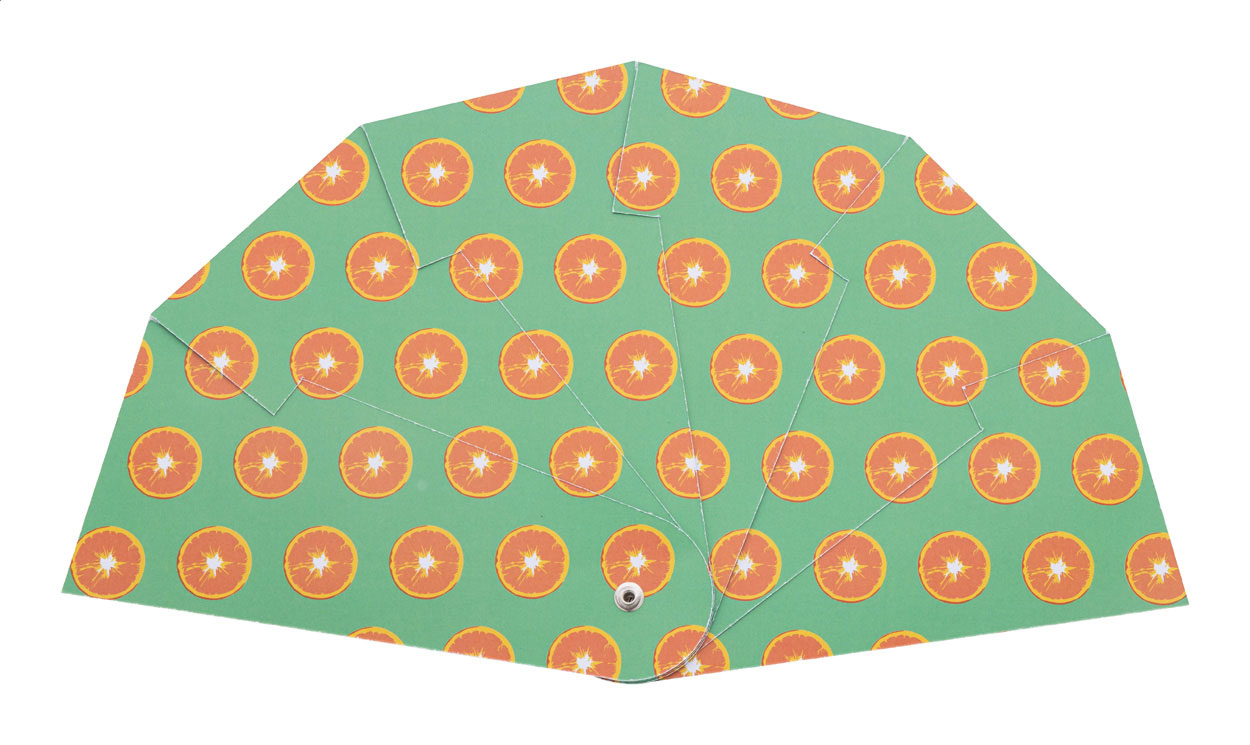 Ventaglio in carta pieghevole con grafica a colori. Il costo comprende la stampa digitale su entrambi i lati. MOQ: 100pz.