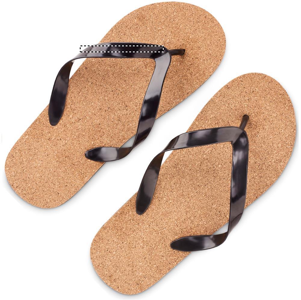 Infradito da spiaggia con suola in sughero ed EVA e cinghie in PVC. La taglia M si adatta al 36-39. Il sughero è un materiale naturale al 100%. A causa della sua natura strutturale e della porosità della superficie, il risultato di stampa finale per articolo potrebbe presentare deviazioni.