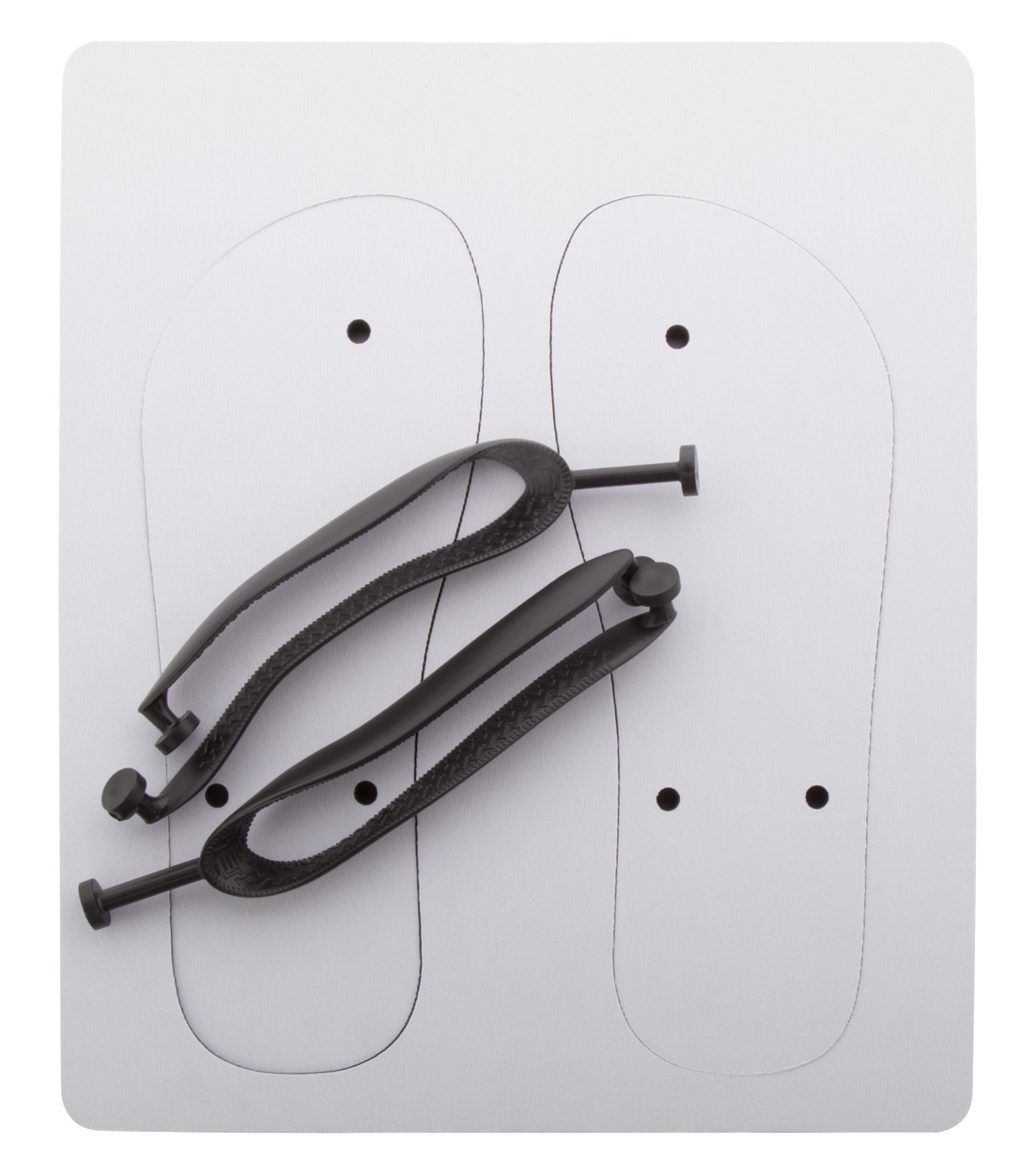 Ciabatte da spiaggia unisex, con infradito in PVC nero e stampa in sublimazione. Il prezzo include la stampa in sublimazione. MOQ: 50 pz.