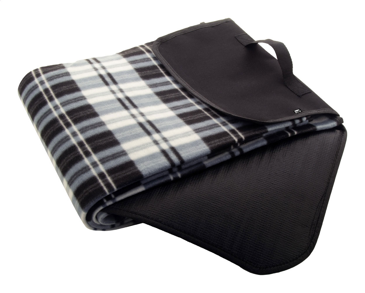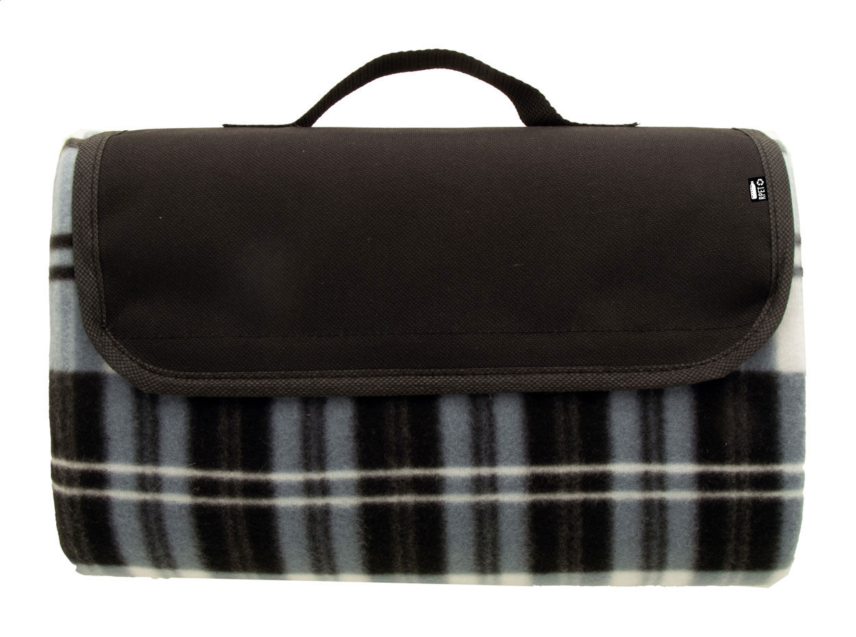 Coperta da picnic ripiegabile in pile polare RPET con maniglia e retro trattato in materiale idrorepellente. Poliestere RPET, 160 g/m².