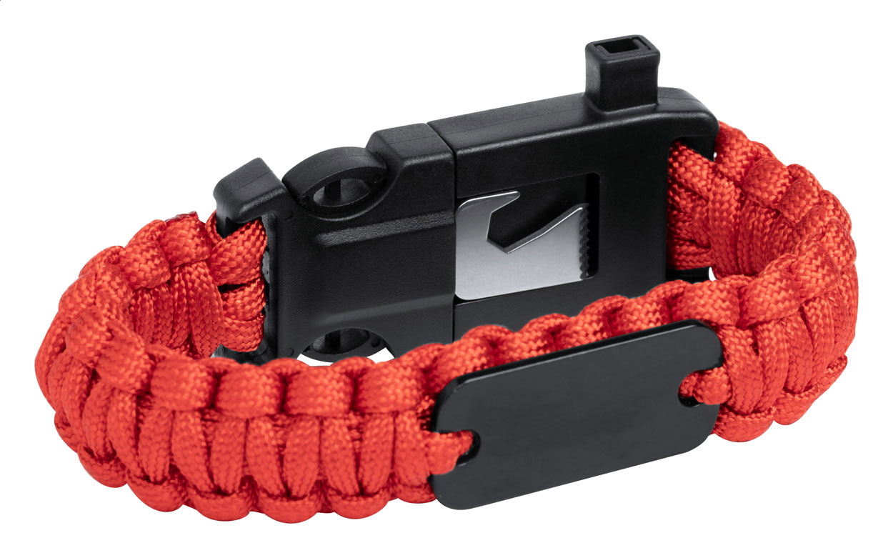 Bracciale di sopravvivenza multifunzione in paracord di nylon con bussola, fischietto e pietra focaia accendi fuoco.