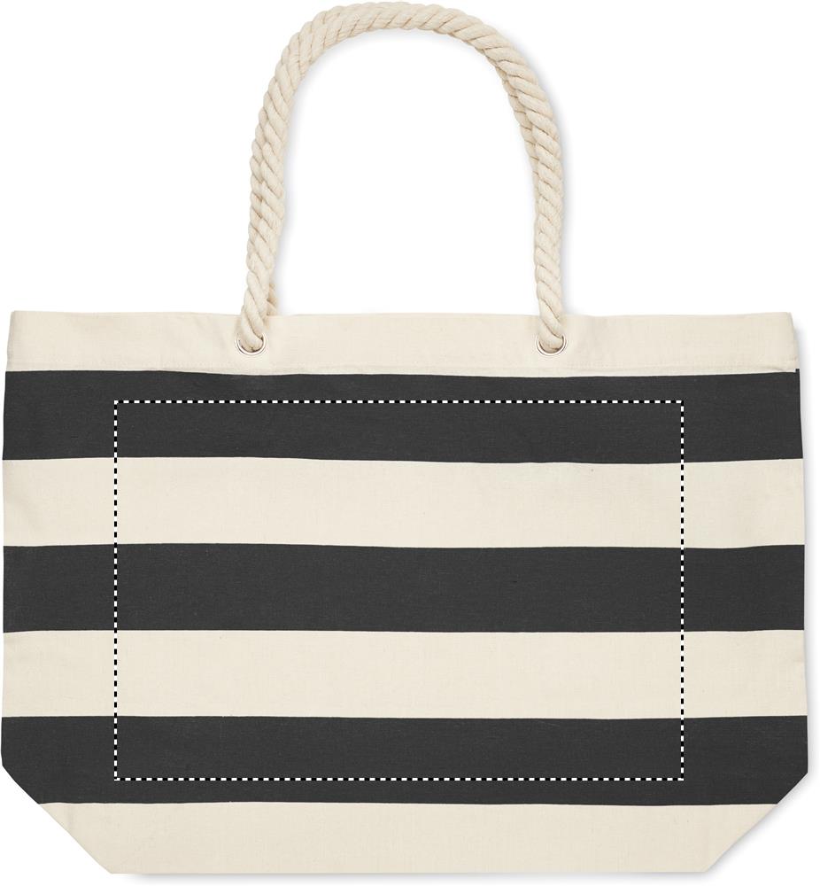 Borsa mare a righe in cotone, con manico in corda, 220 gr/m², che può essere utilizzata anche come shopping bag.