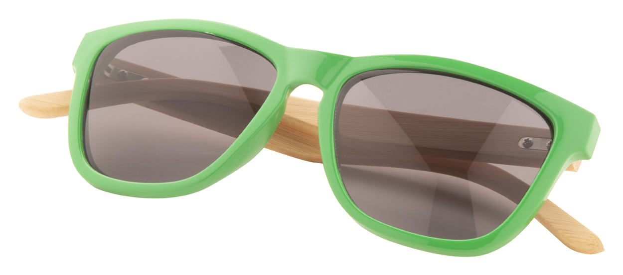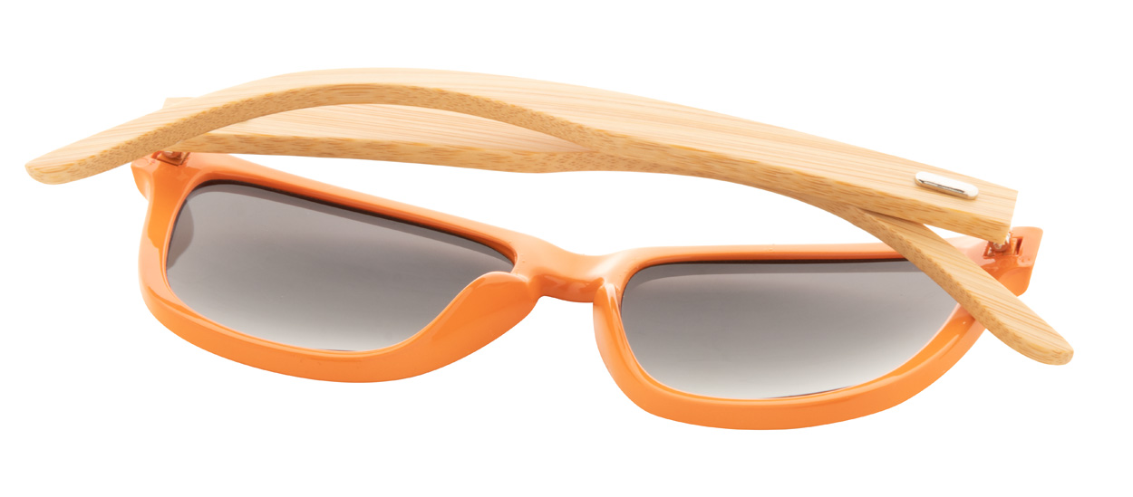 Occhiali da sole con montatura in plastica colorata e aste di bambù. Con protezione UV 400.