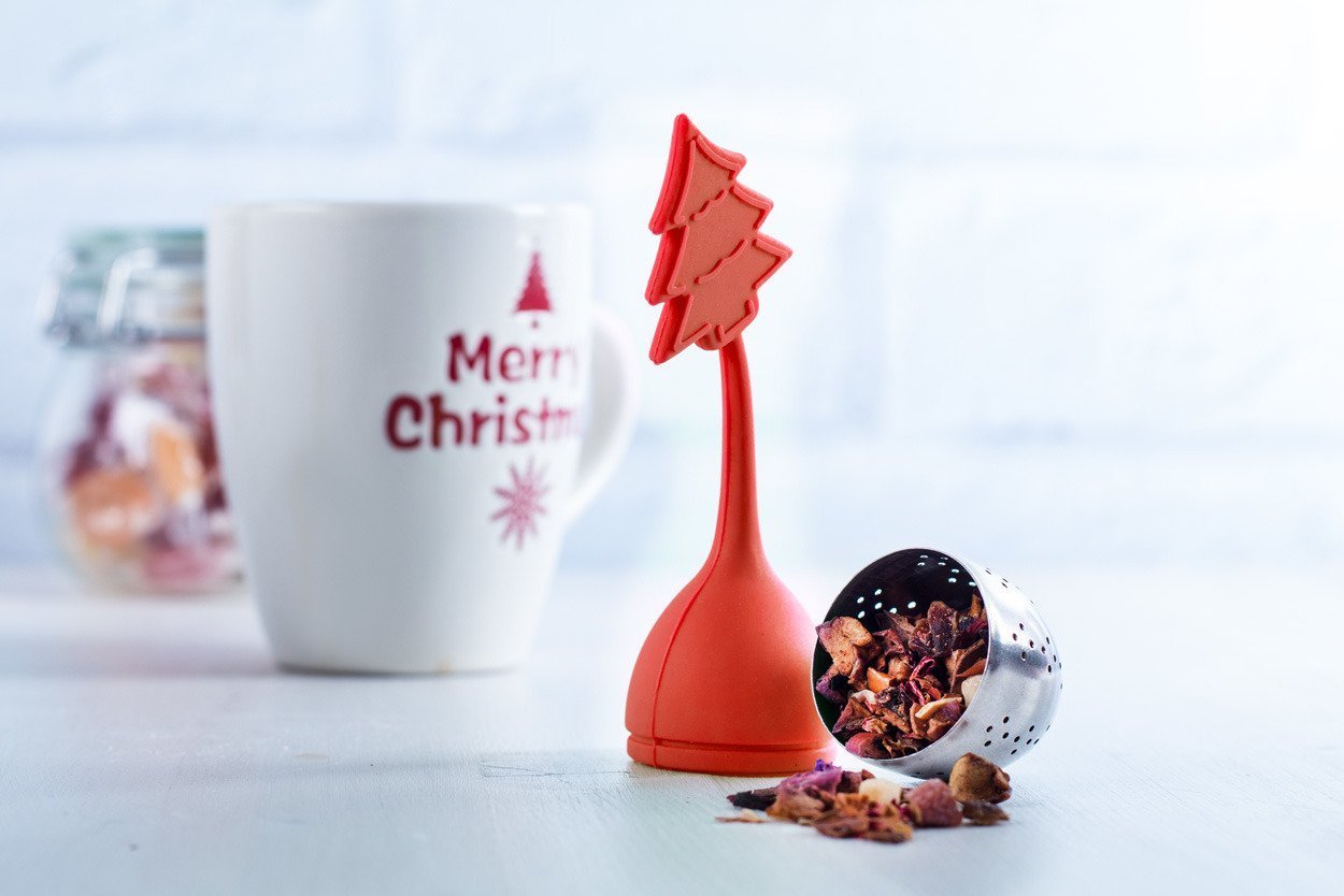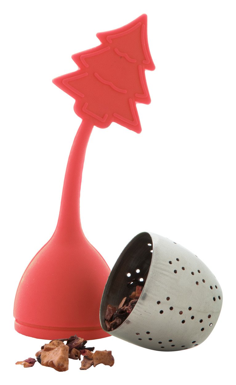 Infusore per té in silicone e acciaio inox - con decorazione a forma di albero di Natale.