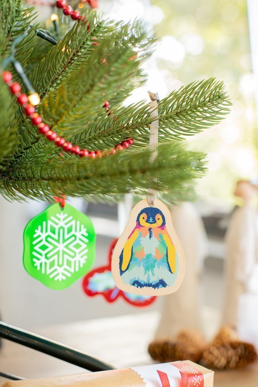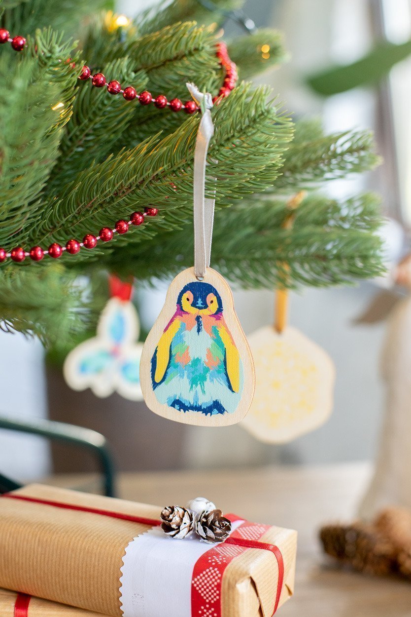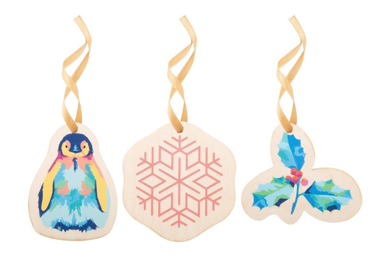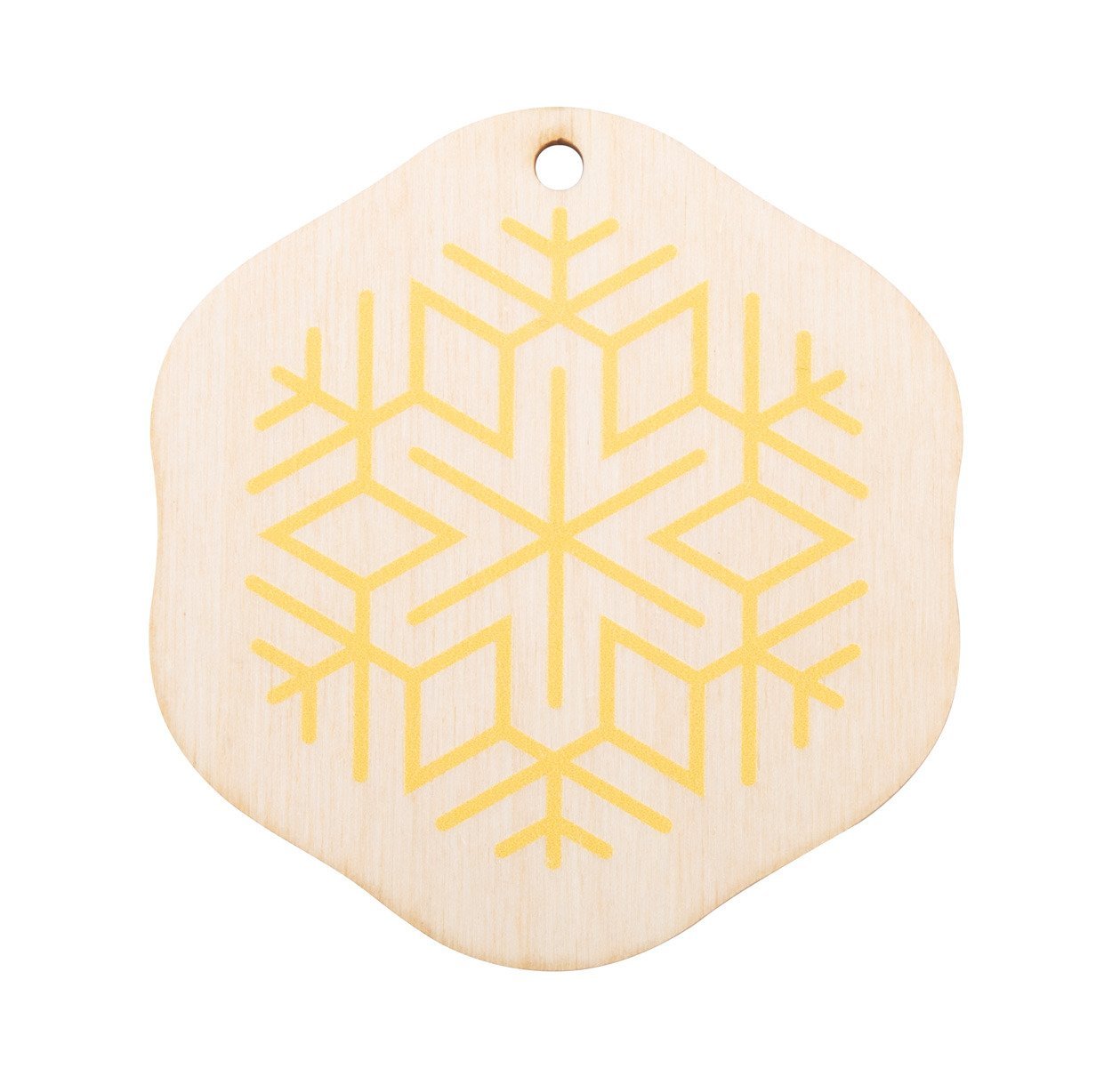 Decorazione per albero di Natale in compensato di betulla, con forma personalizzabile e grafica a colori. Dimensioni massime: 80x80 mm. Il prezzo include la stampa LED UV su un lato. Consegnato con nastro separato. MOQ: 100 pezzi.