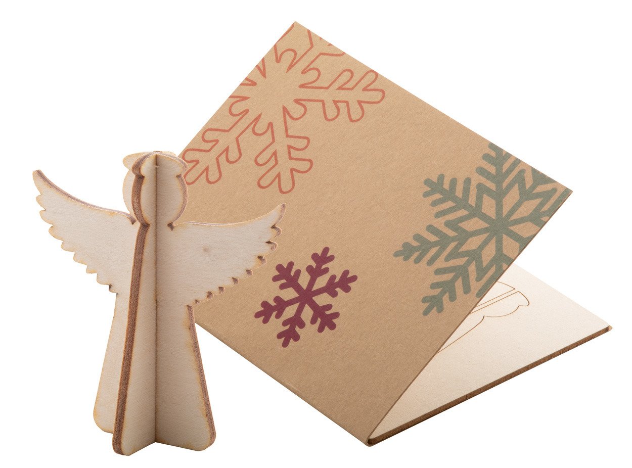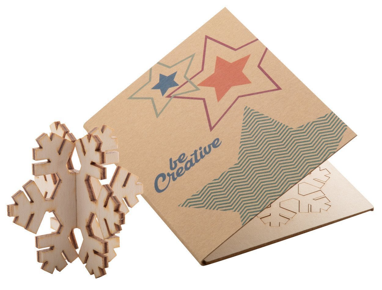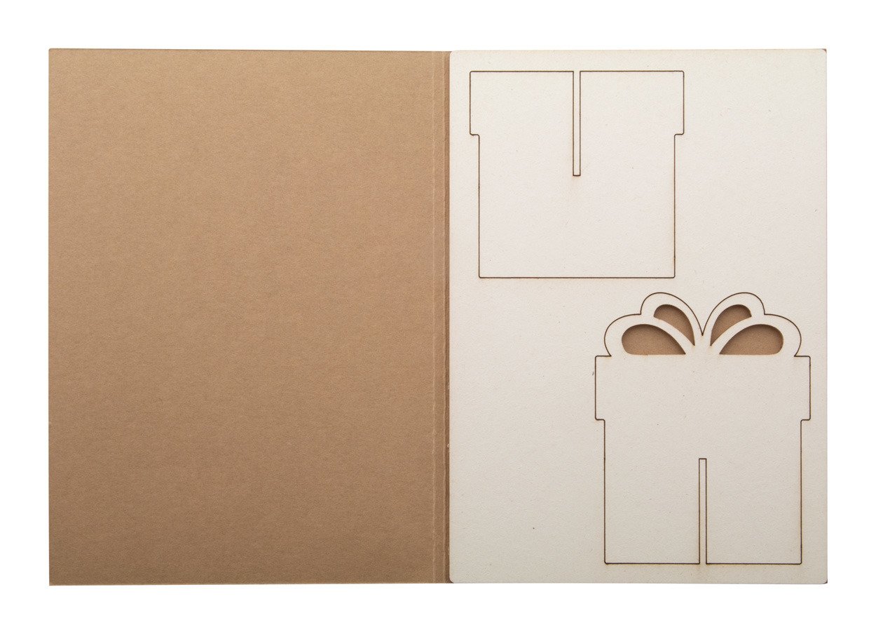 Biglietto di auguri natalizio in carta kraft con grafica personalizzata su entrambi i lati e puzzle in pasta di legno di stile natalizio. Busta postale C6 inclusa. MOQ: 100 pezzi.