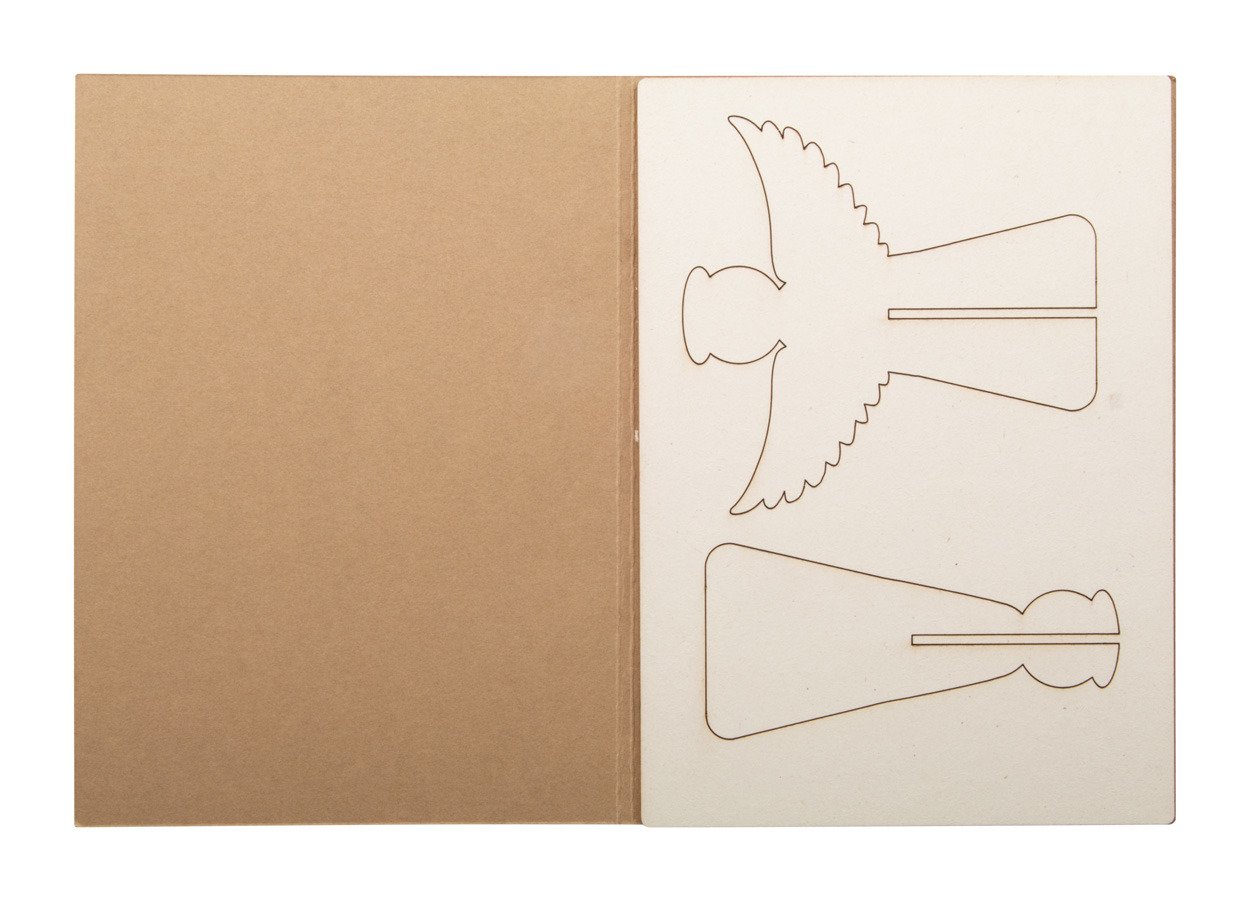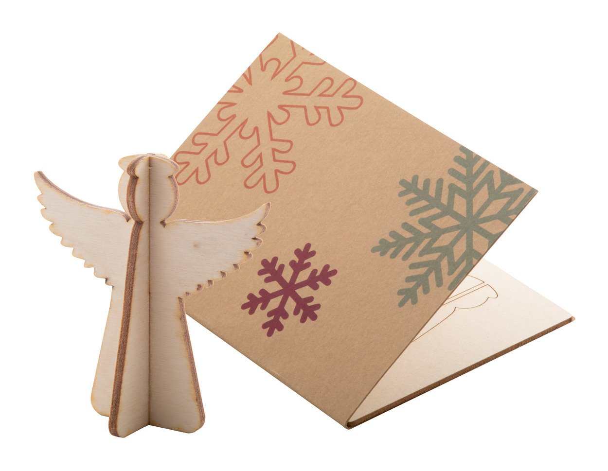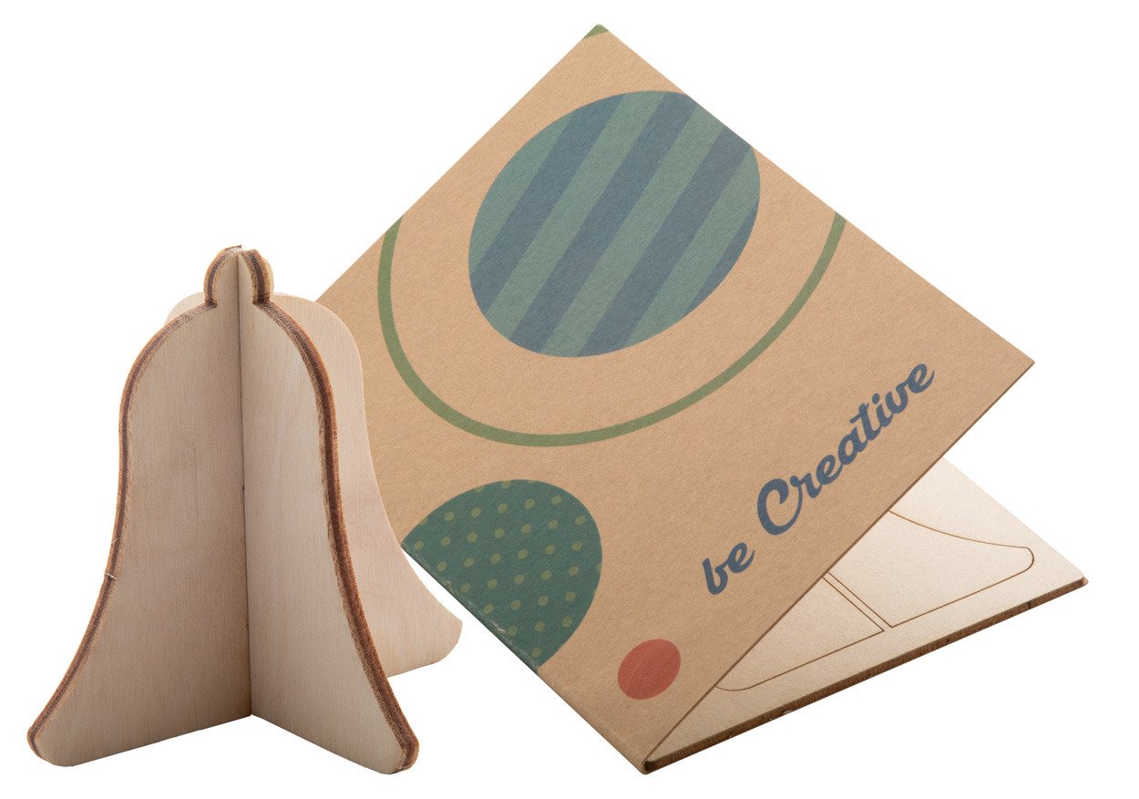 Biglietto di auguri natalizio in carta kraft con grafica personalizzata su entrambi i lati e puzzle in pasta di legno di stile natalizio. Busta postale C6 inclusa. MOQ: 100 pezzi.