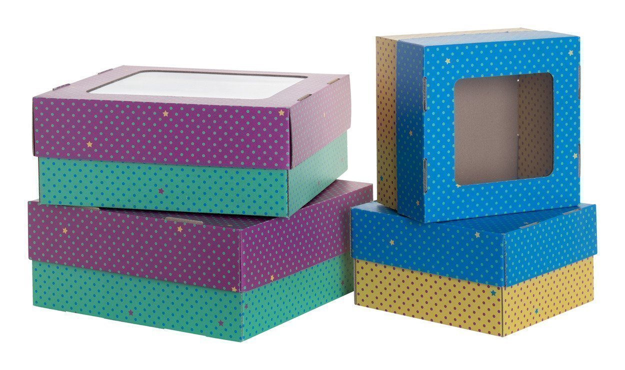 Scatola in cartone ondulato con coperchio e fondo stampati a colori. Fornita in confezione piatta. MOQ: 50 pezzi.