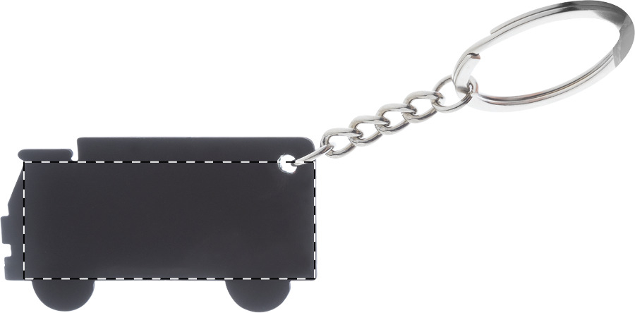 Portachiavi in acciaio riciclato a forma di camion con finitura gommata. Trattamento speciale che permette l'incisione laser a specchio.