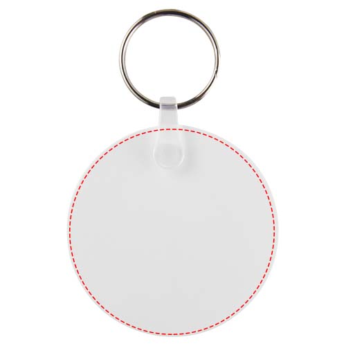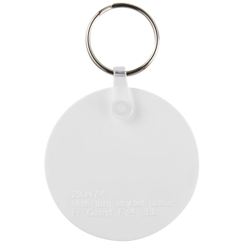 Portachiavi a forma di cerchio, in plastica HIPS riciclata, personalizzabile sull'intera superfice con anello in metallo.