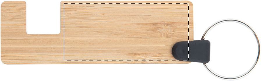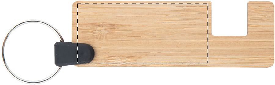 Portachiavi con anello metallico e supporto portacellulare in multistrato di bambù.