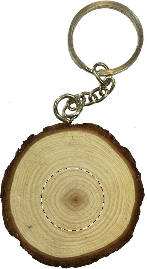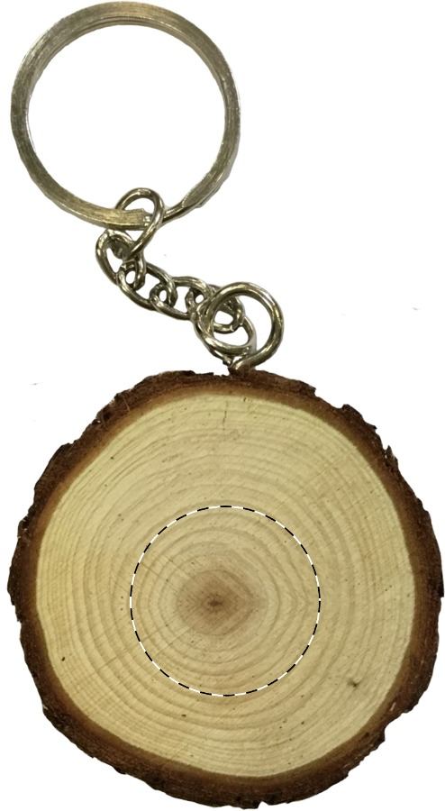 Portachiavi con corteccia di legno di pino e anello in metallo. Le dimensioni dei prodotti possono variare.