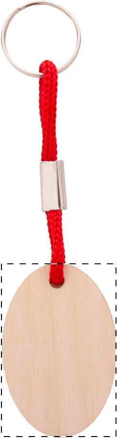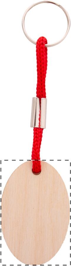 Portachiavi ovale in compensato di betulla personalizzabile con stampa a colori e cordoncino in poliestere colorato. Il costo comprende la stampa UV LED su un lato. MOQ: 200 pz.