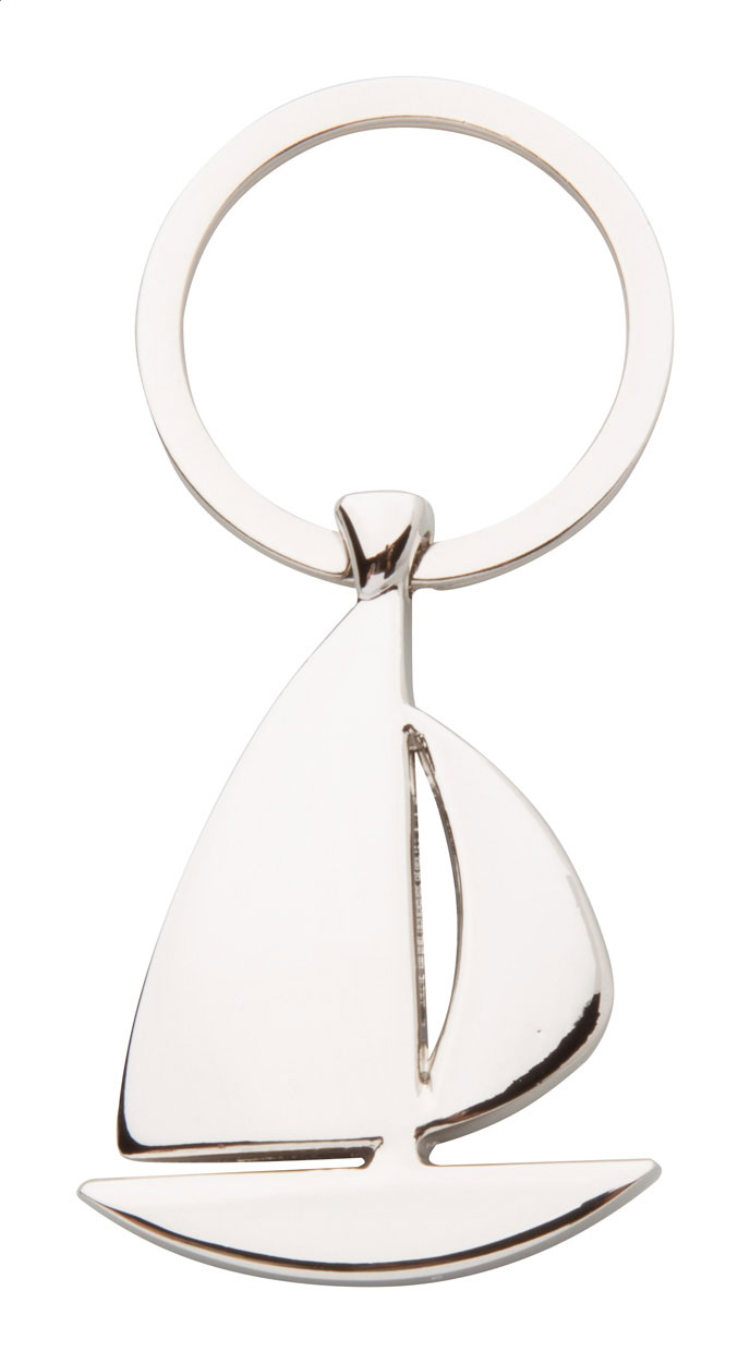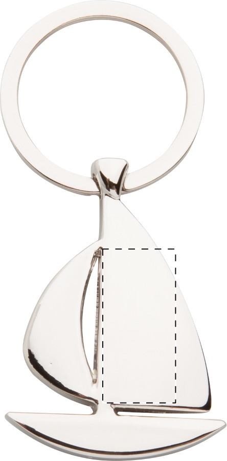 Portachiavi in metallo a forma di nave in confezione di cartone nera.