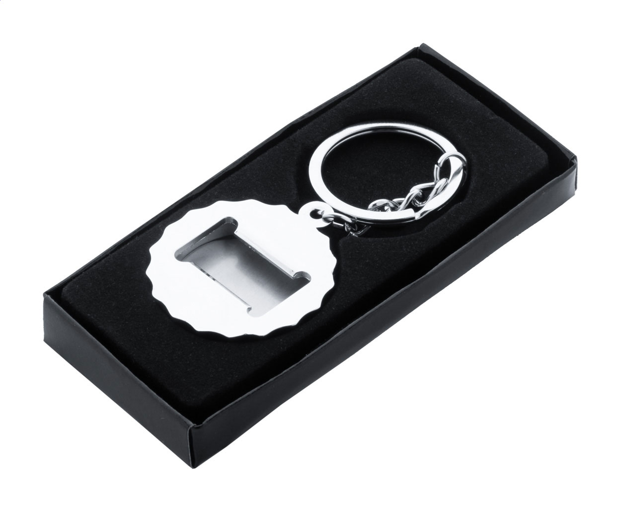 Portachiavi in metallo a forma di tappo di bottiglia con apribottiglie, in confezione regalo nera. Ideale per la stampa con resina epossidica.