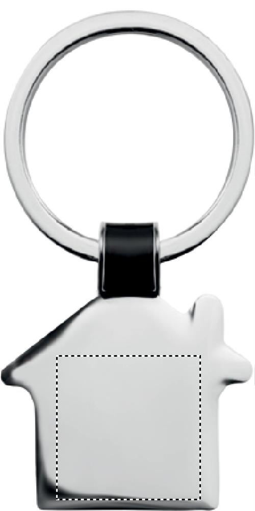 Portachiavi a forma di casa in metallo rivestito di nickel lucido.