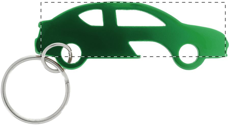 Portachiavi in alluminio a forma di auto con funzione apribottiglie.
