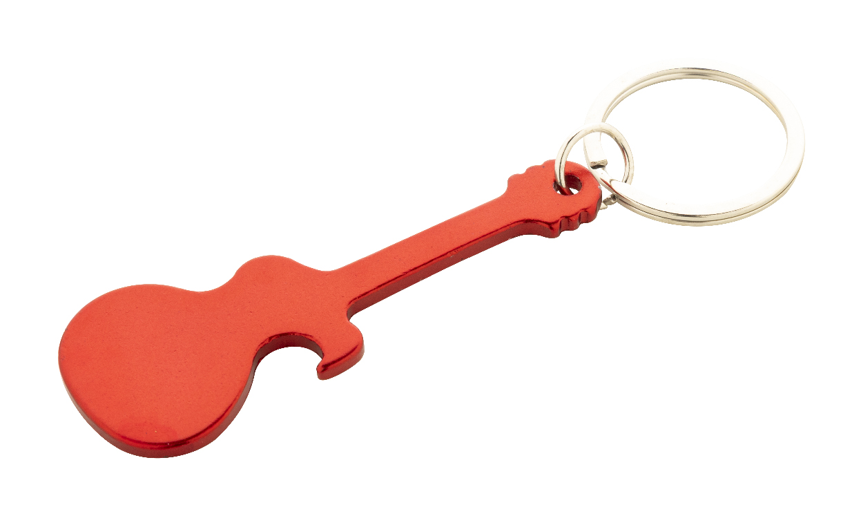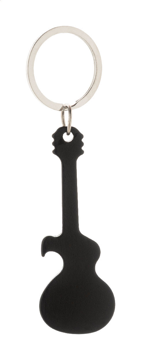 Portachiavi in alluminio a forma di chitarra con funzione apribottiglie.