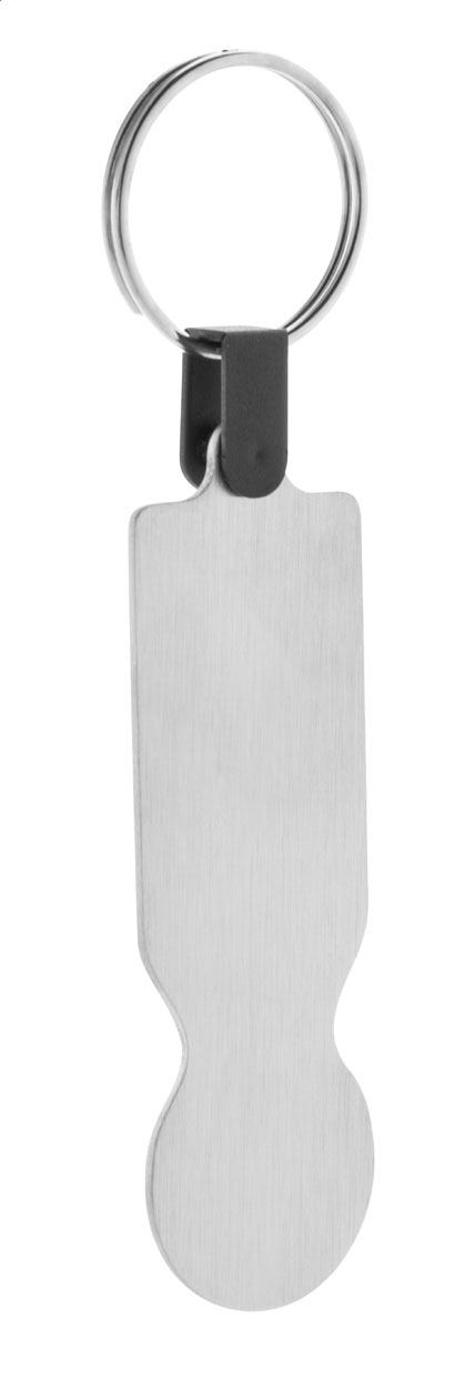 Portachiavi in acciaio con chiavetta per sgancio carrello della spesa.