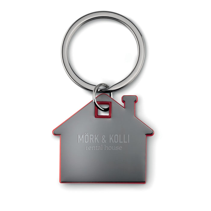 Portachiavi a forma di casa in ABS e acciaio inossidabile.
