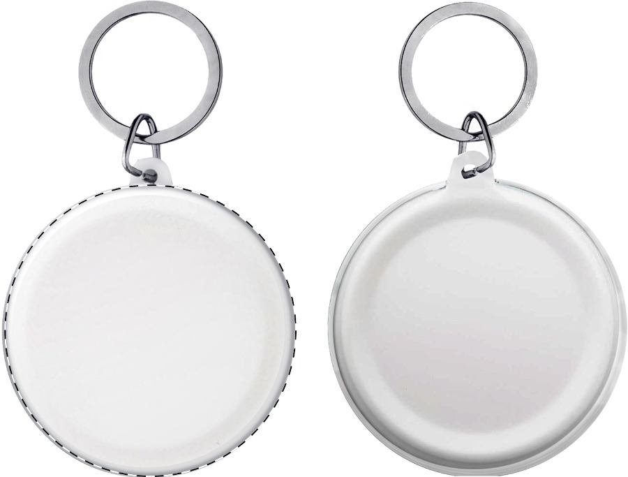 Portachiavi a bottone grande con inserto in carta personalizzabile a colori. Il prezzo include la stampa digitale. MOQ: 100 pezzi.
