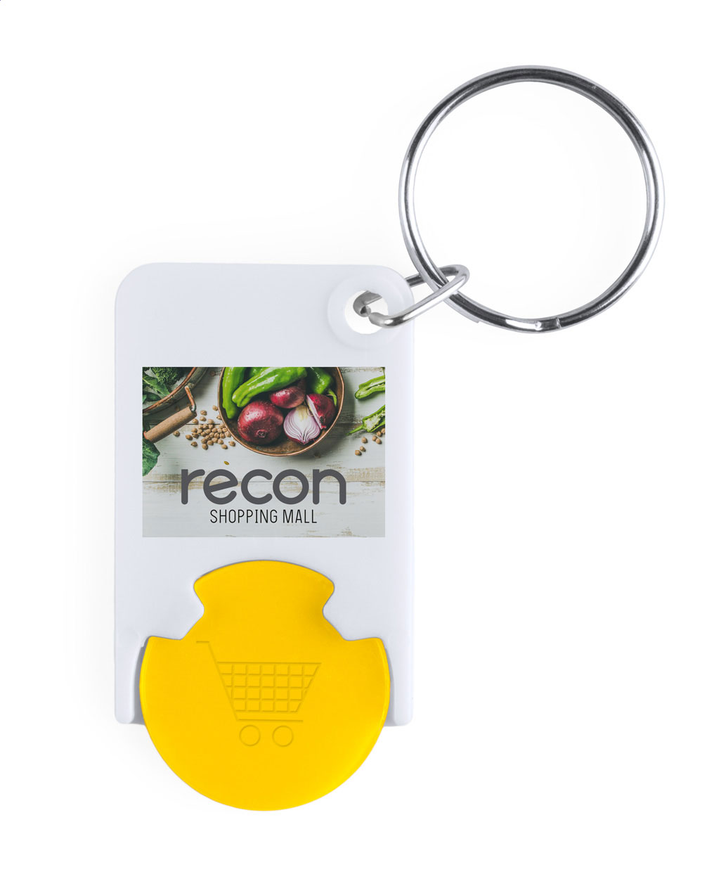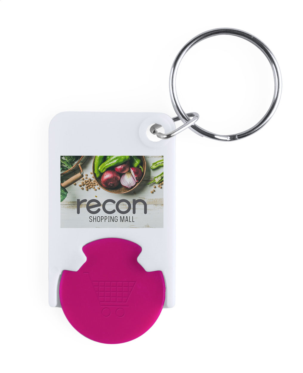 Portachiavi di plastica con gettone colorato.