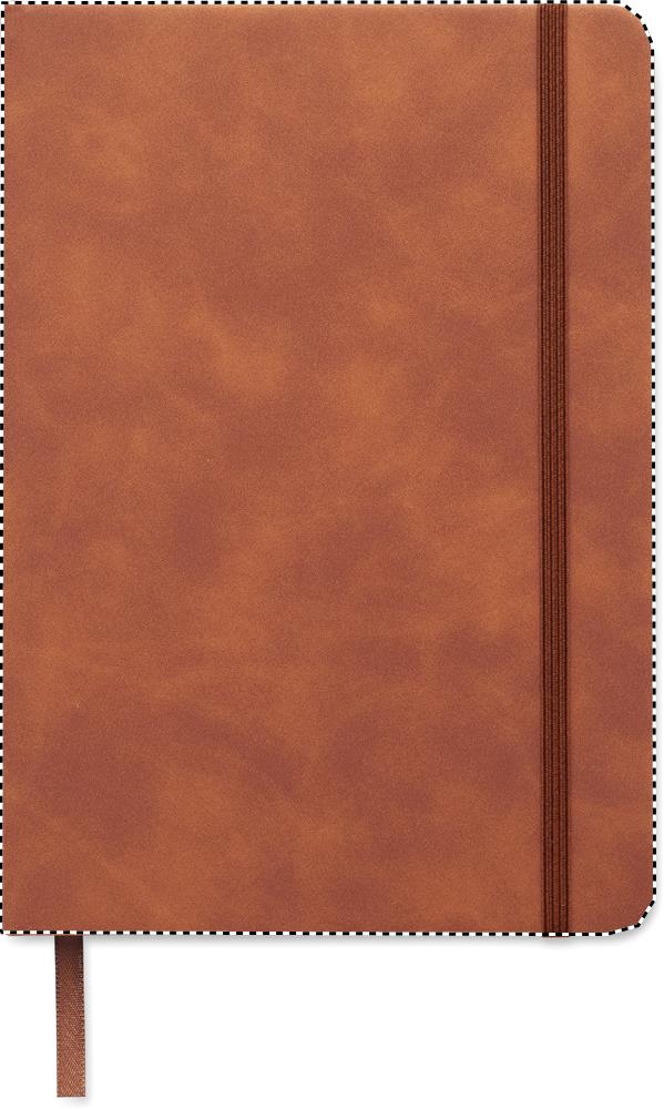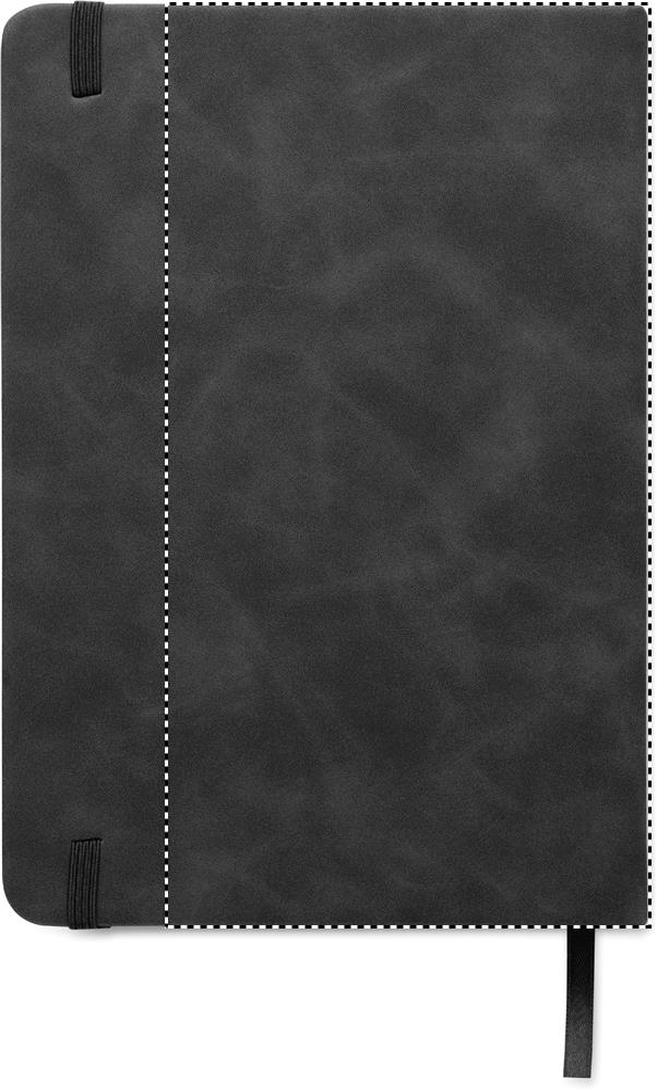 Notebook A5 con copertina rigida in PU riciclato post consumo al 40% e copertina in PU al 60%. Rilegato con custodia. 160 pagine a righe, carta riciclata da 70 g/m² (80 fogli). Segnapagina in nastro di poliestere di colore abbinato.