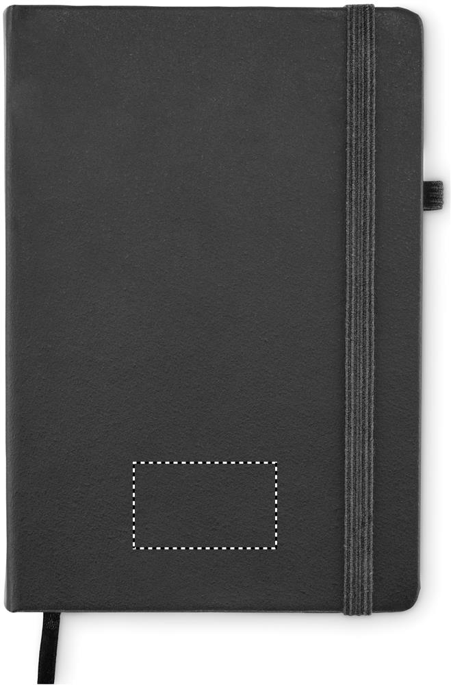 Quaderno A5 con copertina in pelle pre-consumo riciclata al 70% e copertina in PU lattice al 30%. Rilegato con custodia. 192 pagine a righe in carta riciclata (96 fogli). Chiusura in cotone elastico abbinata, con portapenne. Consegna express inclusa 3-4 gg lavorativi fino a 50 pz.