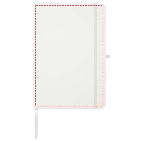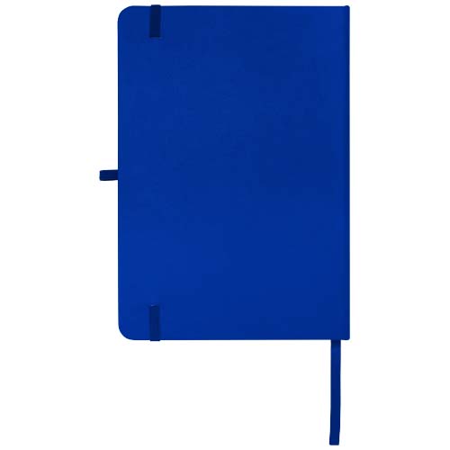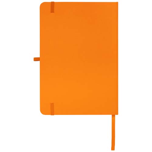 Blocco note con copertina rigida in cartone riciclato formato A5 con angoli arrotondati, si compone di 96 fogli a righe di carta da 70 g/m² e una copertina morbida. Dispone di passante per la penna, chiusura elastica e segnalibro. Carta riciclata. FSC.