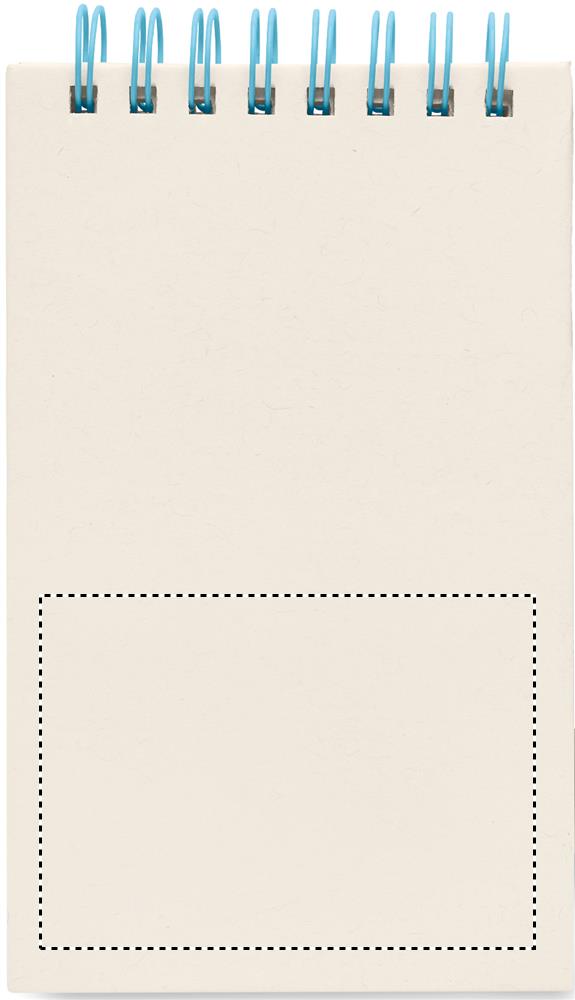 Block notes A6 da 70 fogli in carta comune (70% cartone del latte riciclato e 30% carta riciclata) con penna abbinata. Rilegato ad anelli. Penna a sfera a pulsante abbinata. Inchiostro blu. Cinghia di chiusura elastica e portapenne. Spedizione express inclusa 3-4 gg lavorativi fino a 150 pz.