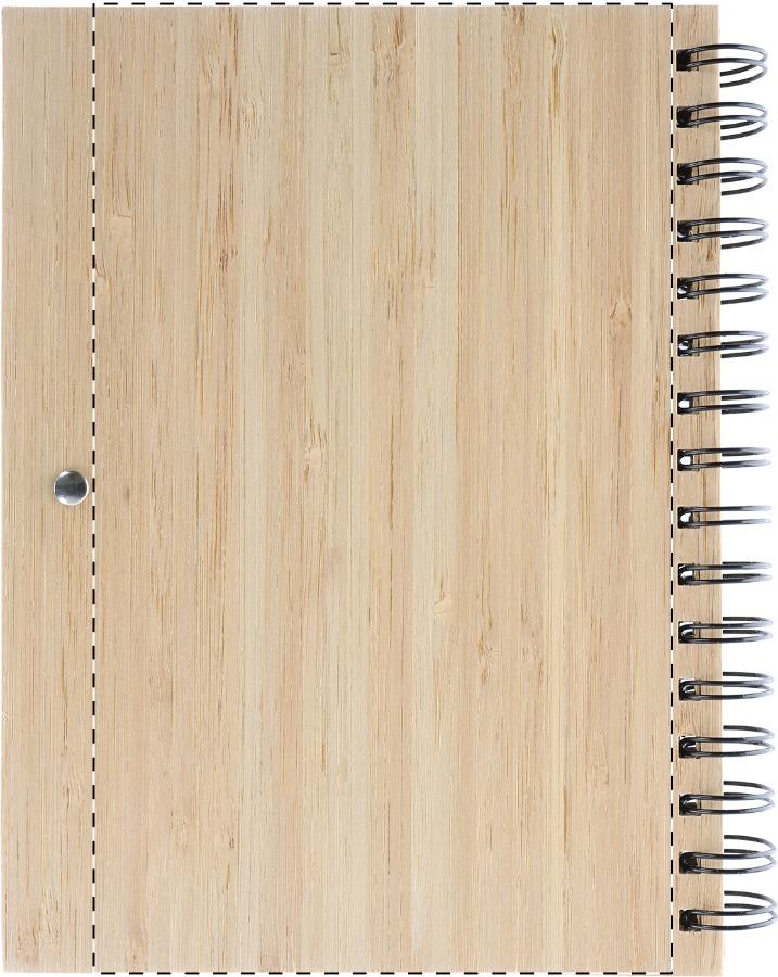 Quaderno a spirale con copertina in bambù. Penna a sfera in bambù con refill nero compresa. 80 fogli a righe, formato A5.