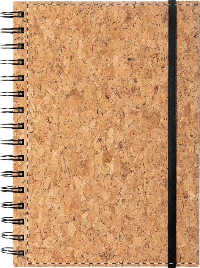 Quaderno a spirale formato A5, con 100 fogli a righe e copertina in sughero naturale.