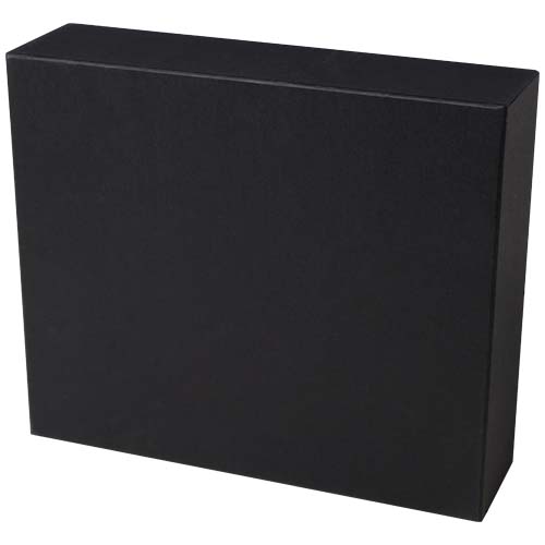 Confezione regalo comprendente un blocco note formato A5 con copertina rigida in PET riciclato, una penna a sfera, una tazza in ceramica e un sottobicchiere. Il blocco note è dotato di chiusura con elastico nera e di un segnalibro, nonché di 80 fogli a righe in carta color crema da 80 g/m². La copertina del blocco note dotata di semicerchio in bambù funge da supporto per telefono. La penna a sfera è realizzata in alluminio riciclato certificato RCS con rivestimento verniciato a spruzzo nero e accessori in bambù su entrambi i lati del fusto superiore. Inchiostro penna: Nero. Capacità di scrittura: 400 metri. La tazza in ceramica da 480 ml viene fornita con un sottobicchiere in bambù. Lavabile solo a mano. Dimensioni della tazza: 11 x 12,7 cm. Diametro del sottobicchiere: 9,5 cm. Dimensioni della confezione regalo: 32 x 27 x 10,3 cm.
