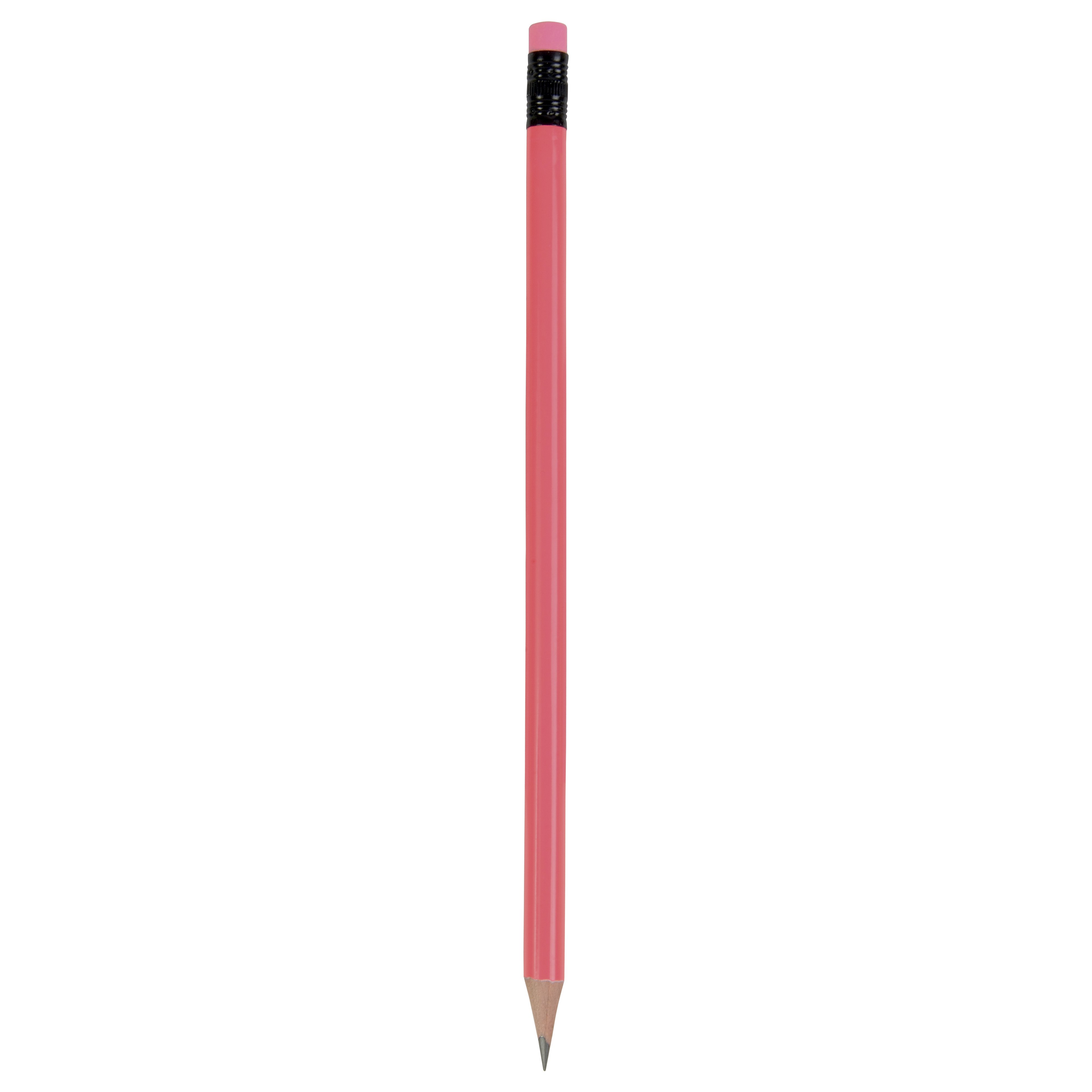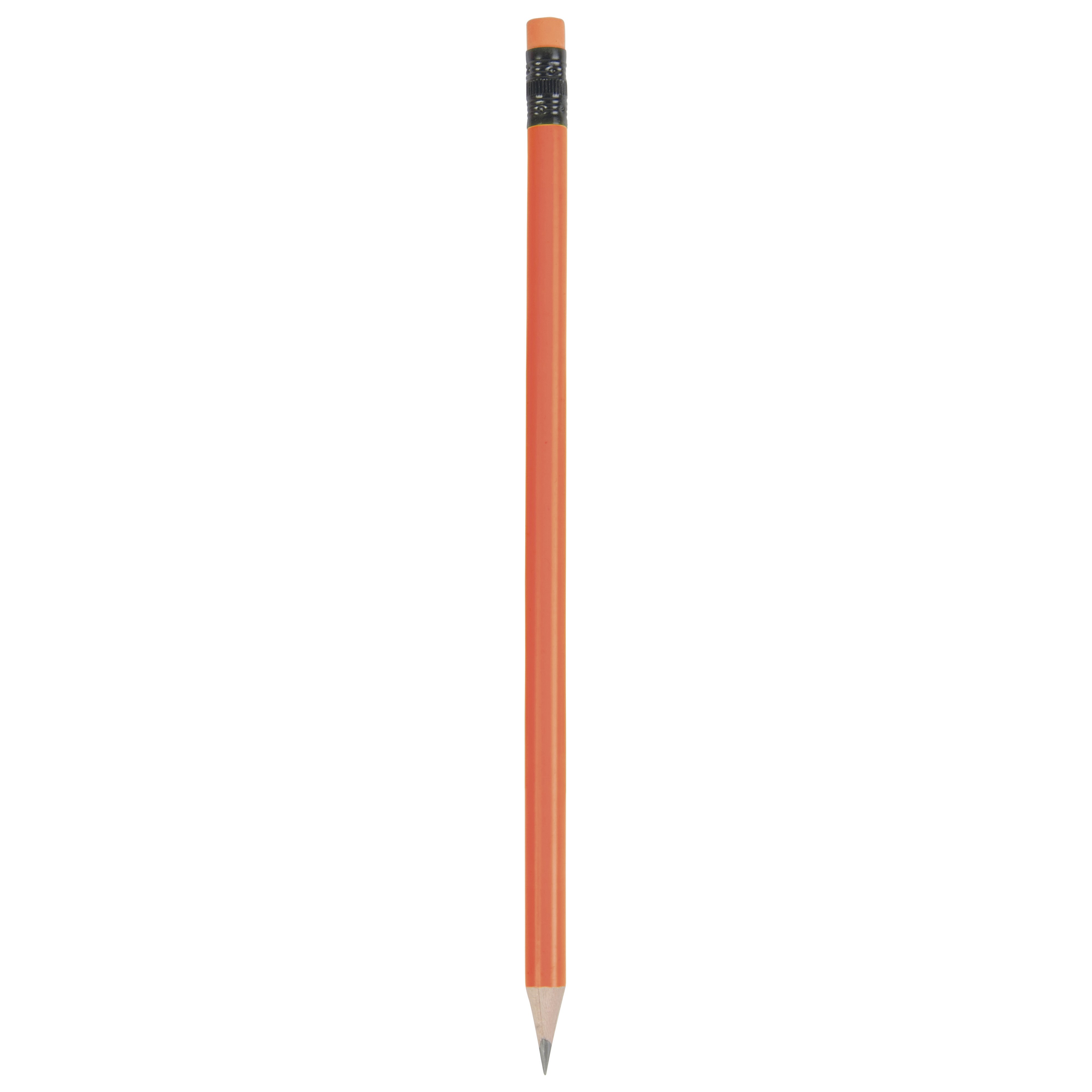 Matita in legno, con colori fluo, mina in grafite, a sezione circolare, con gommino in tinta. Fornita temperata.