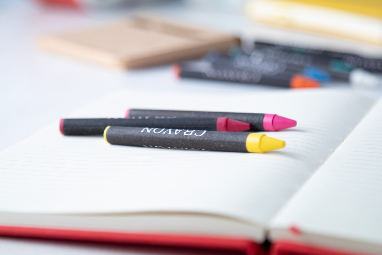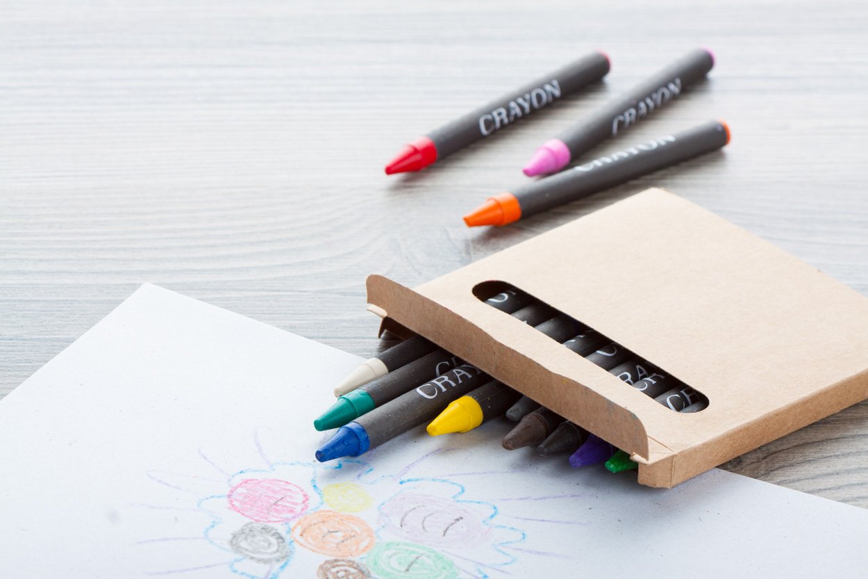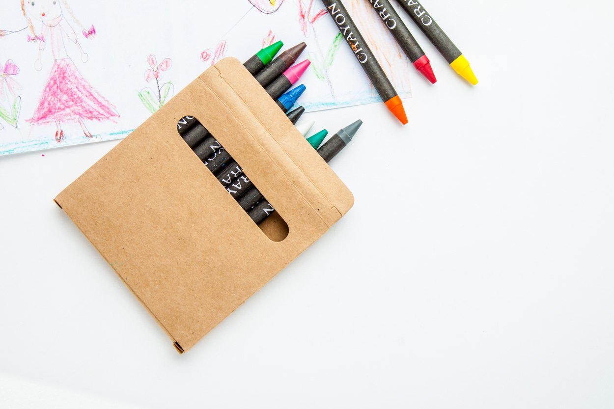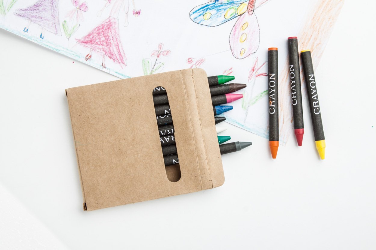 Set 12 pastelli colorati confezionati in una scatola di cartoncino.