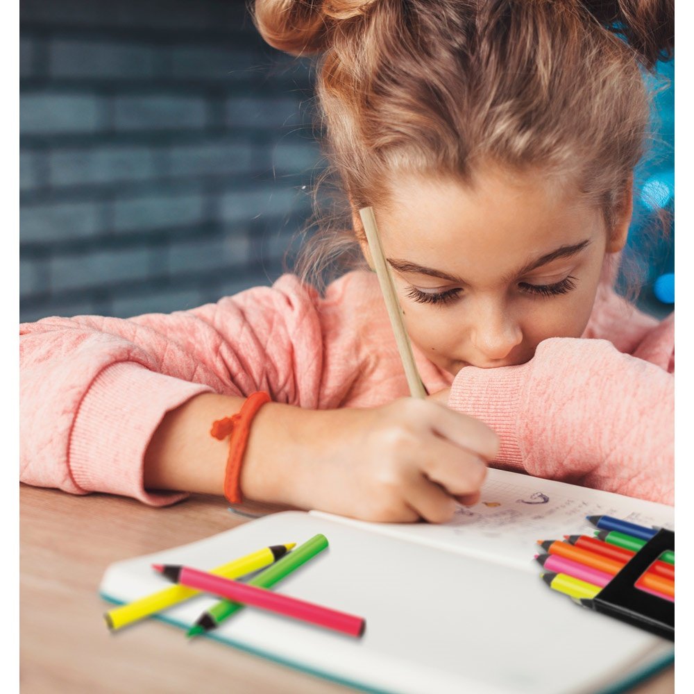 Scatola con 6 piccole matite fluorescenti in legno per colorare