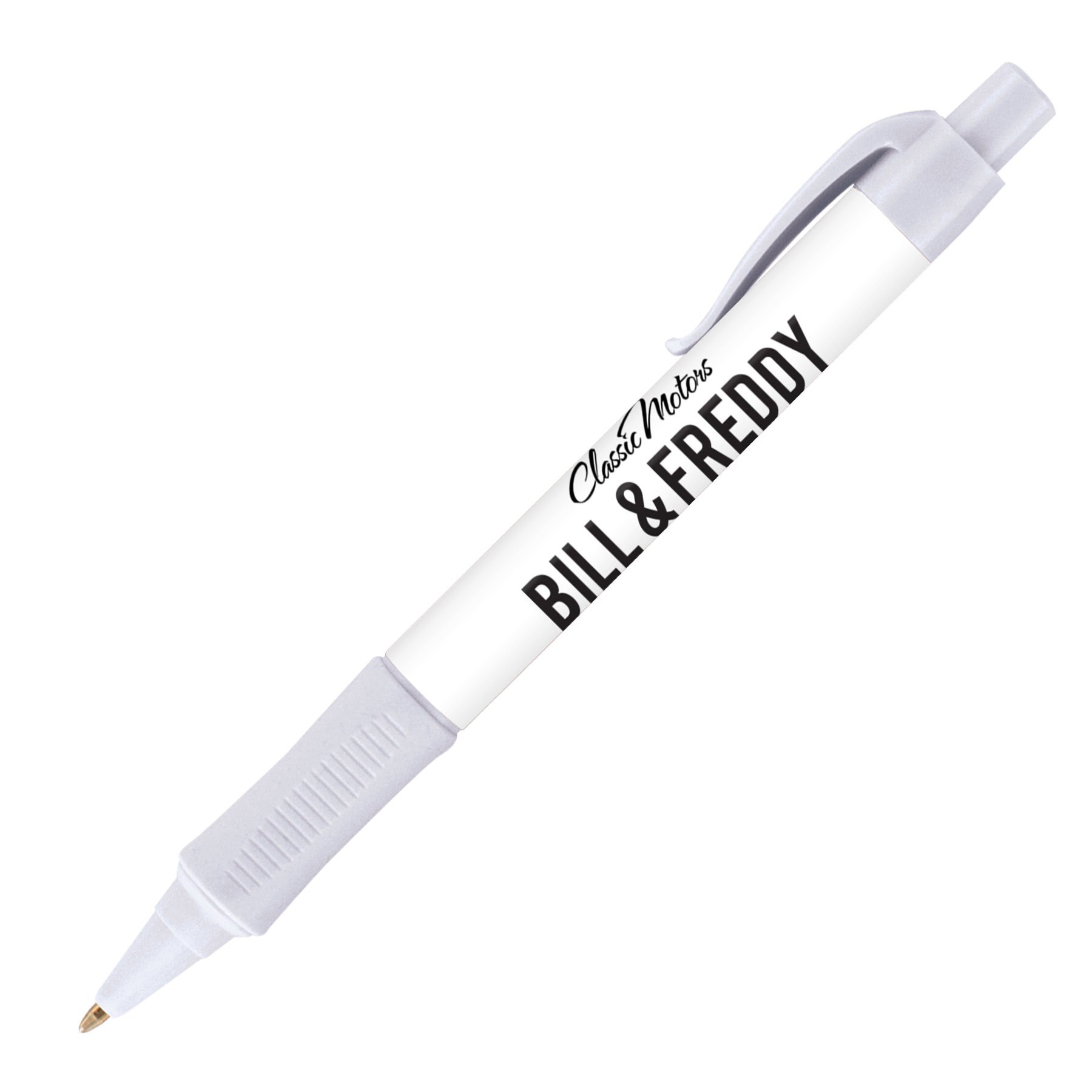 Penna a sfera in plastica, con impugnatura ergonomica gommata, inchiostro Eversmooth (ad alta densità) disponibile in nero o in blu. Il prezzo include la stampa digitale a colori a 360°. Disponibile in vari colori.